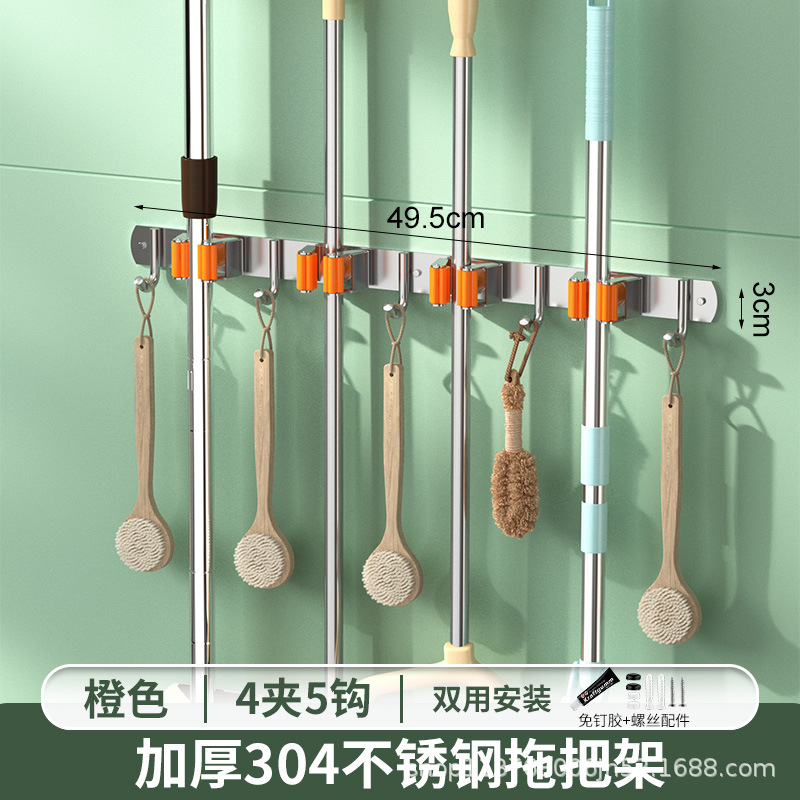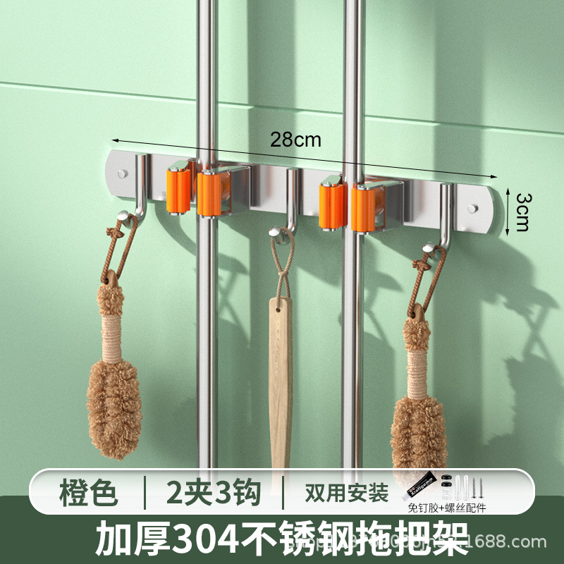 크로스보더 304 스테인리스 무타공 걸레걸이 벽걸이형 화장실 욕실 후크 수납 선반 걸레 클립