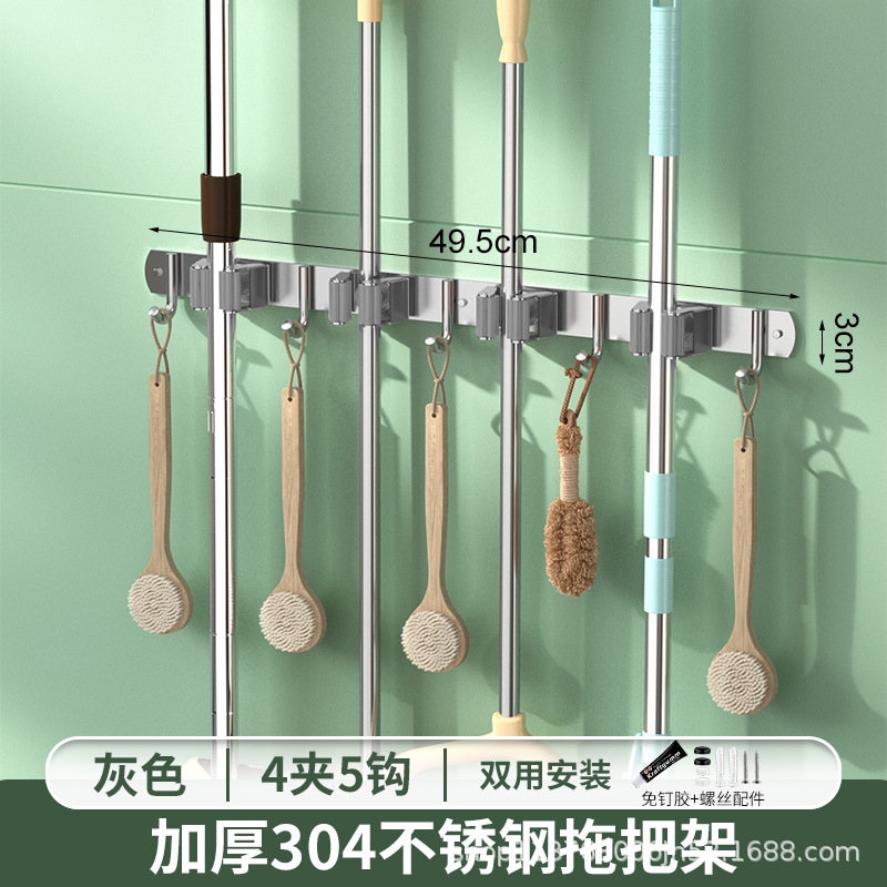 크로스보더 304 스테인리스 무타공 걸레걸이 벽걸이형 화장실 욕실 후크 수납 선반 걸레 클립스토어 가기