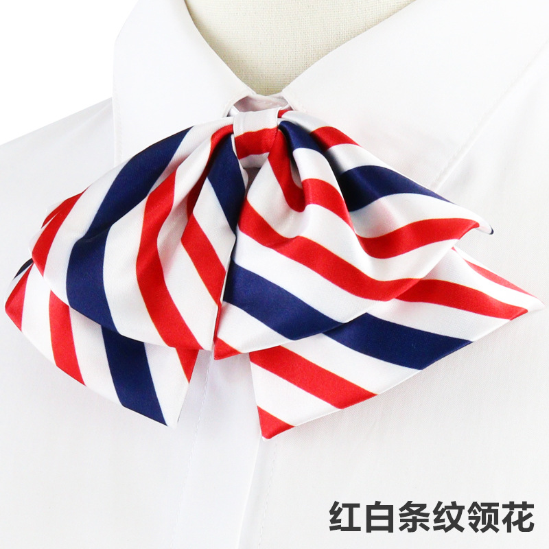 • 네이비 레드와 화이트 스트라이프 나비 칼라 꽃