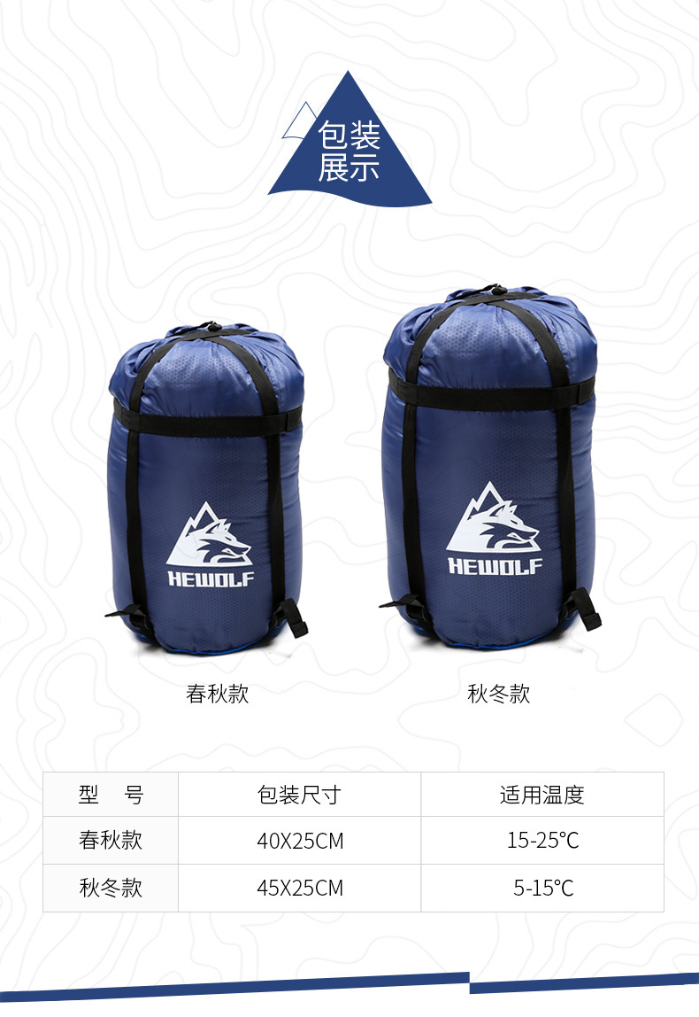 남성 늑대 야외 캠핑 성인 침낭 가을, 겨울 두꺼운 방한 실내 사무실 점심 시간 캠핑 더블 침낭스토어 가기