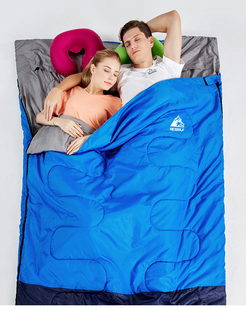 남성 늑대 야외 캠핑 성인 침낭 가을, 겨울 두꺼운 방한 실내 사무실 점심 시간 캠핑 더블 침낭