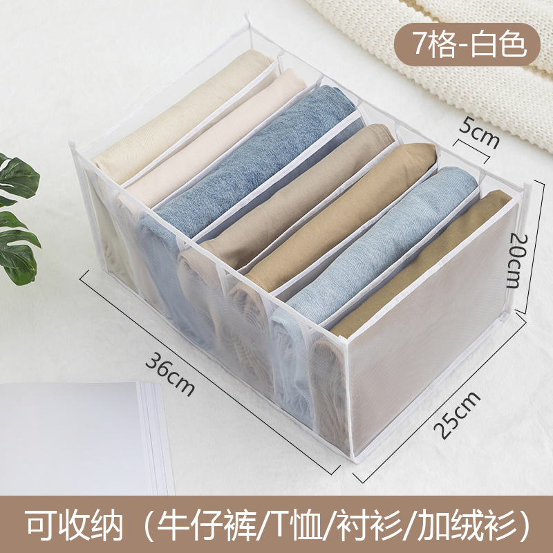 网纱牛仔裤收纳盒网格透气毛衣可水洗抽屉收纳箱折叠分隔整理盒_
