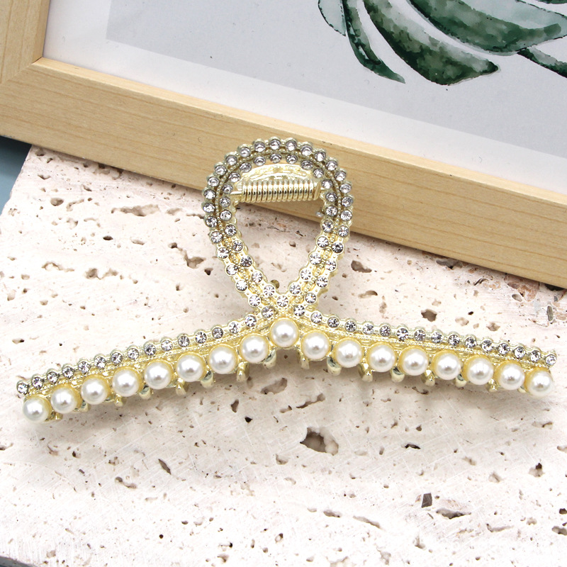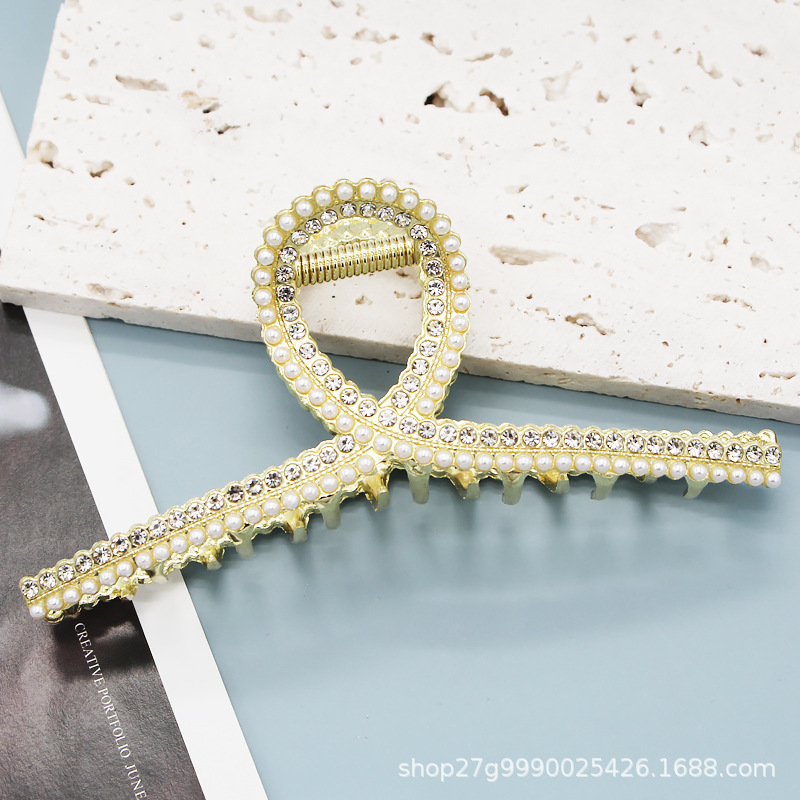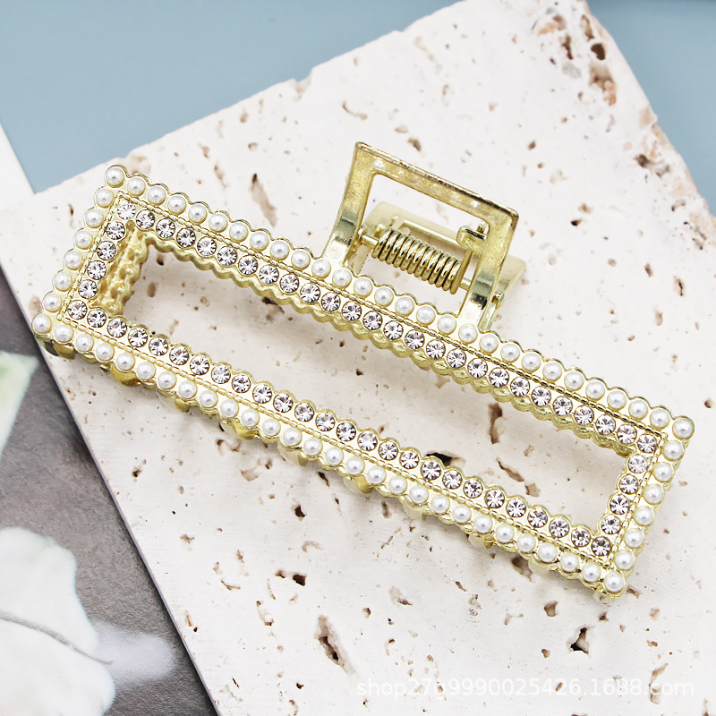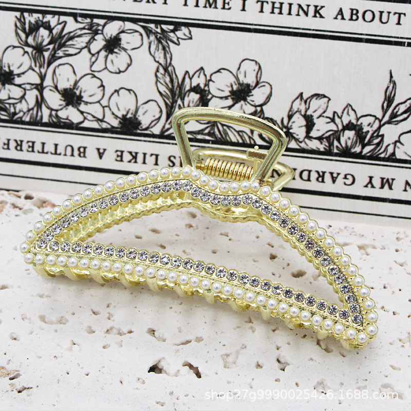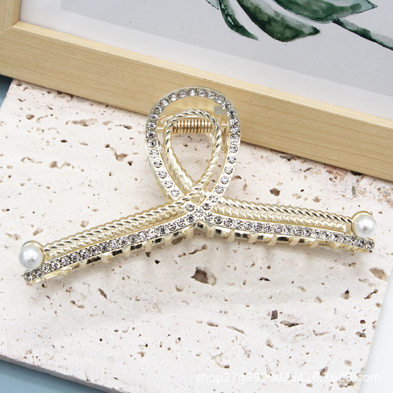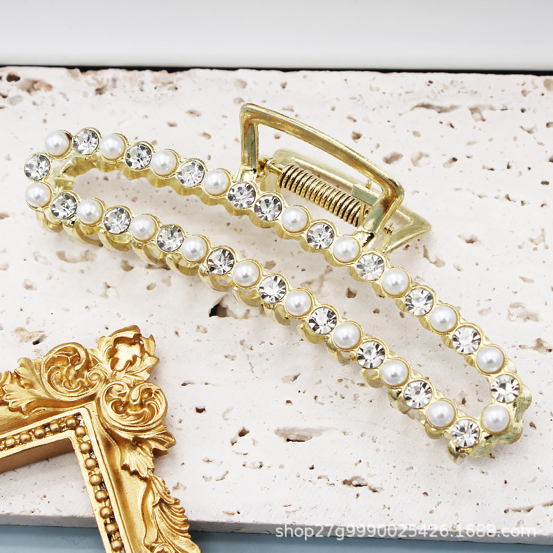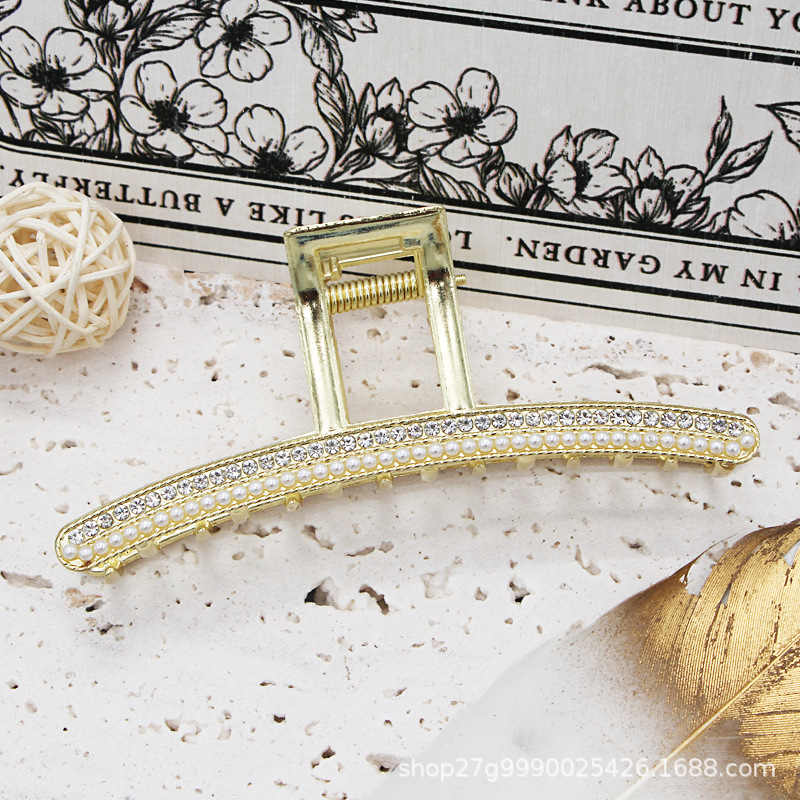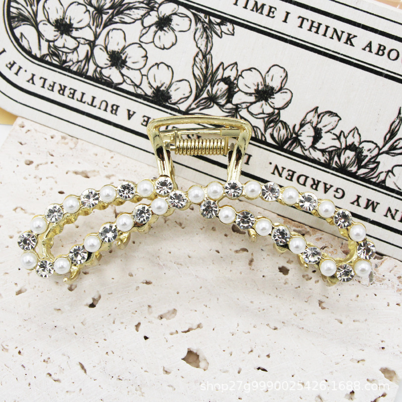 새로운 엔트리 라이트 럭셔리 라인 석 진주 잡아 클립 다이아몬드 INS 스타일 패션 잡아 클립 백 헤드 머리핀 합금 헤어 그랩 클립