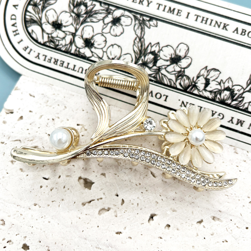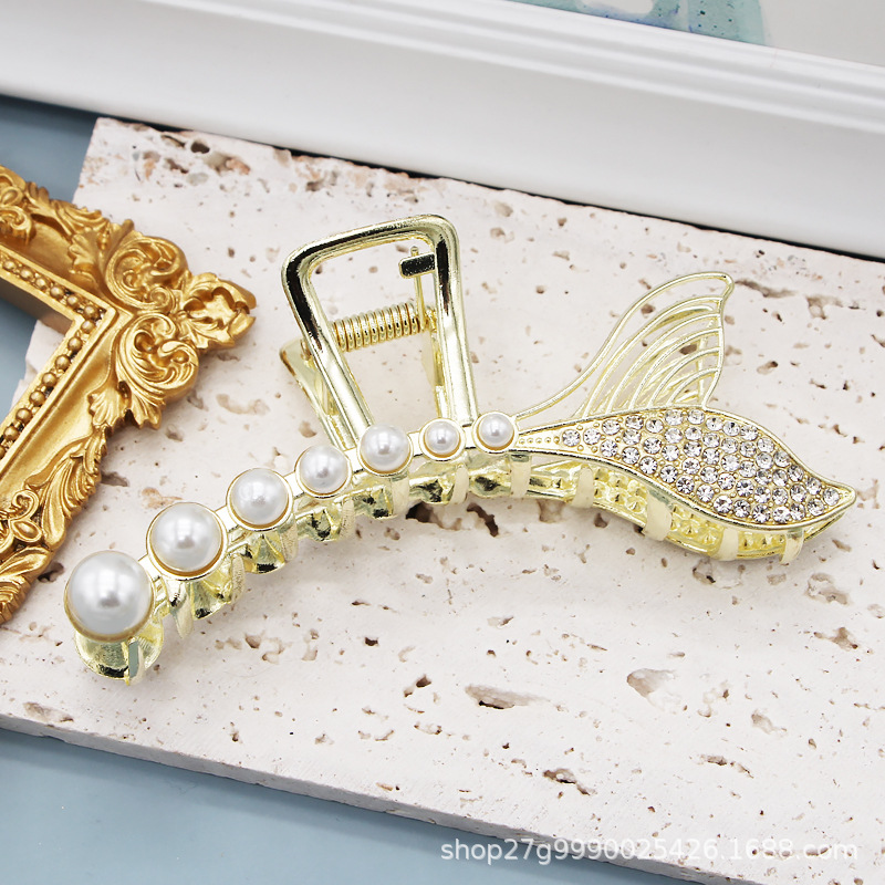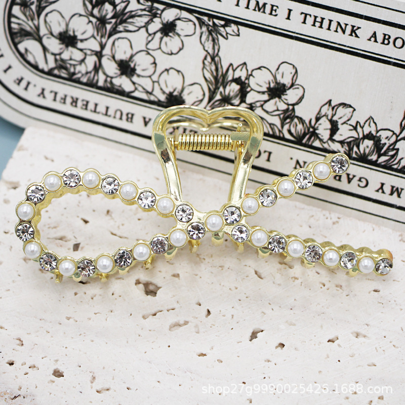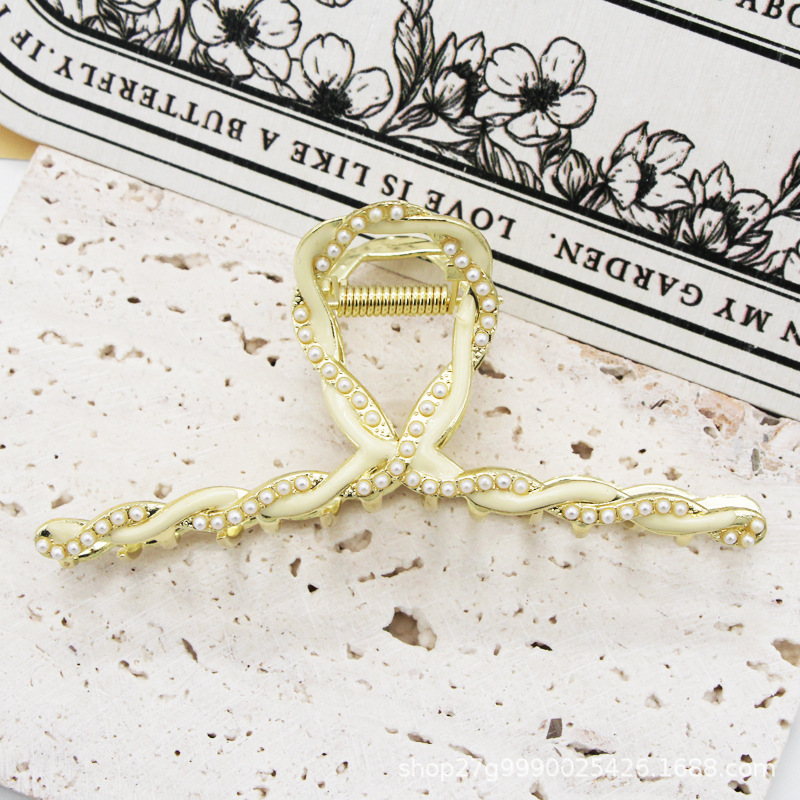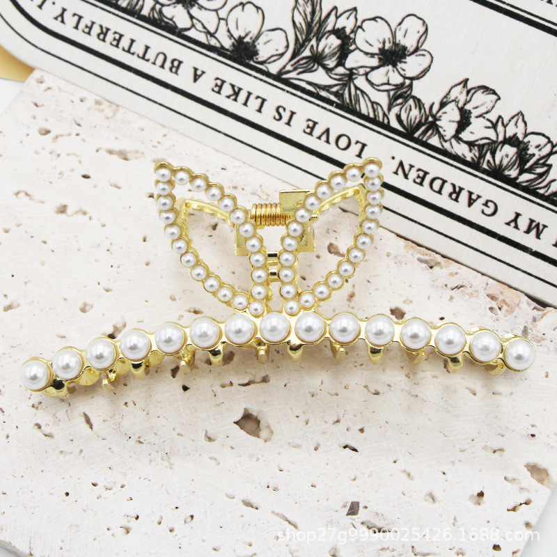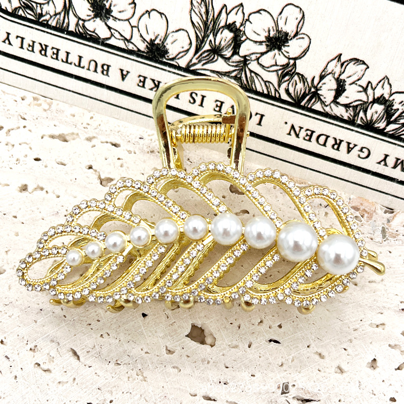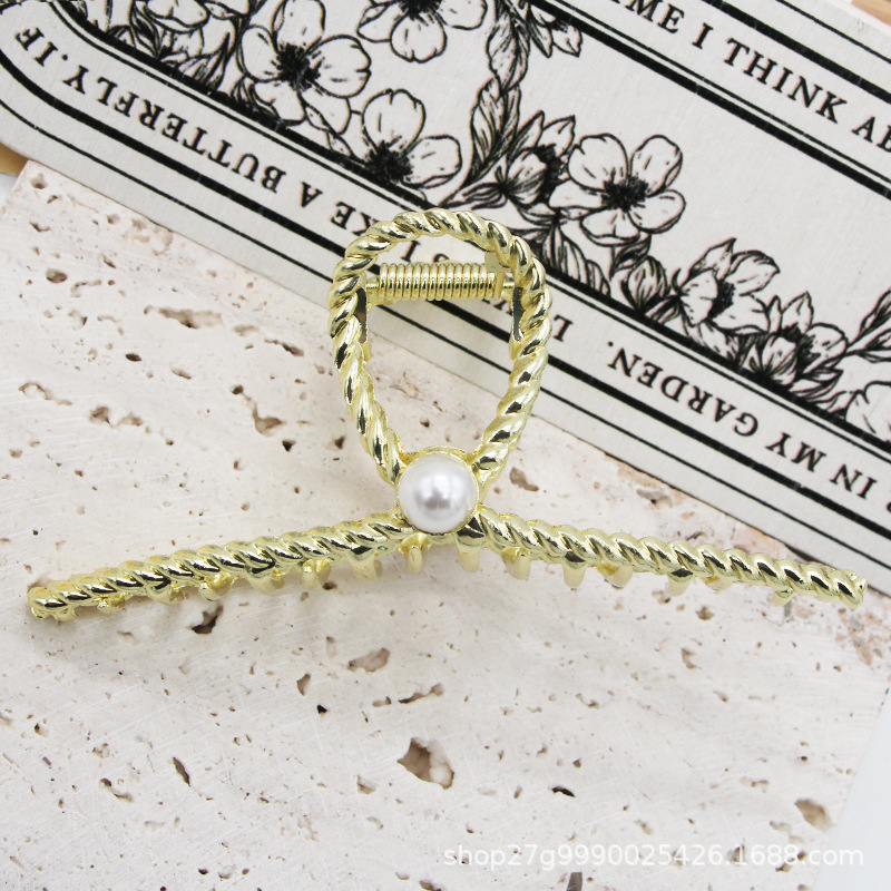 새로운 엔트리 라이트 럭셔리 라인 석 진주 잡아 클립 다이아몬드 INS 스타일 패션 잡아 클립 백 헤드 머리핀 합금 헤어 그랩 클립