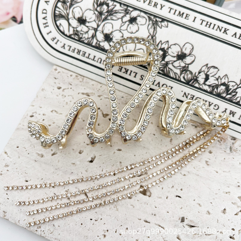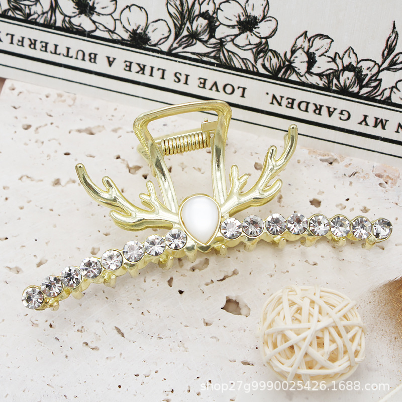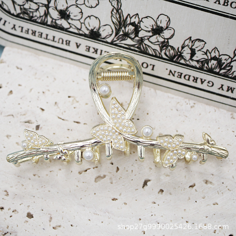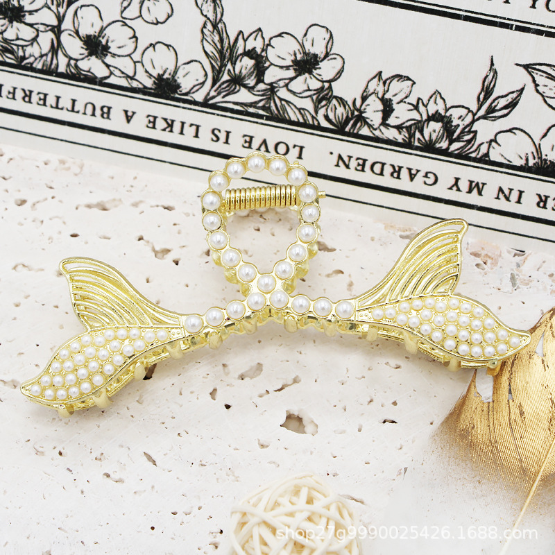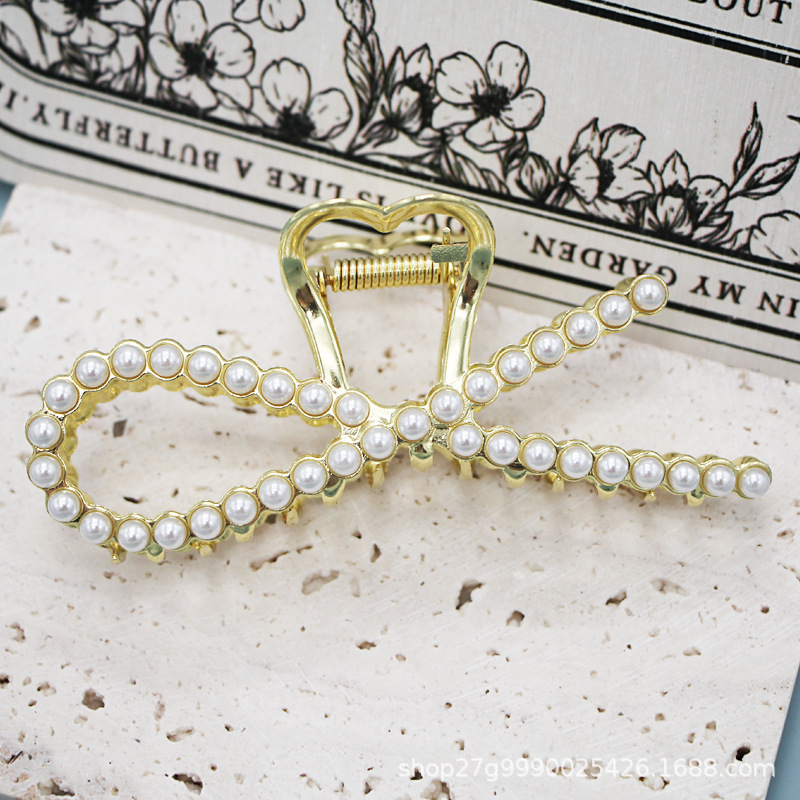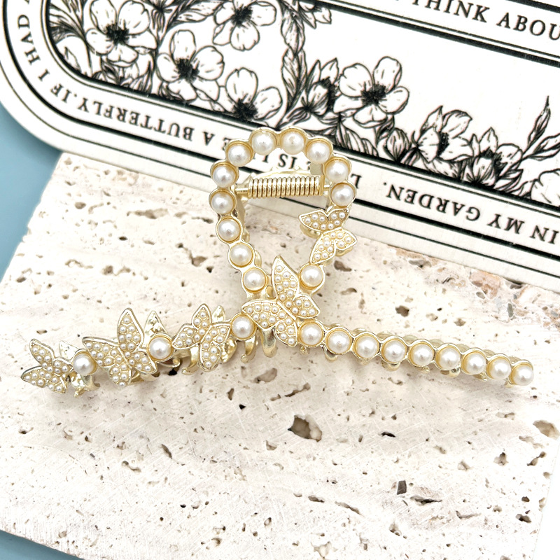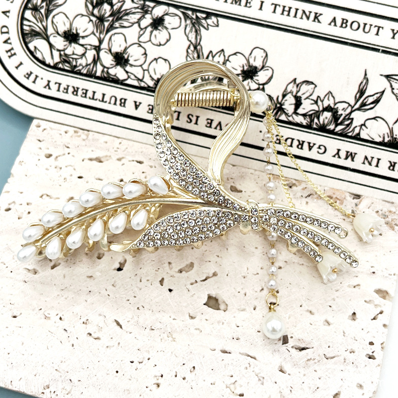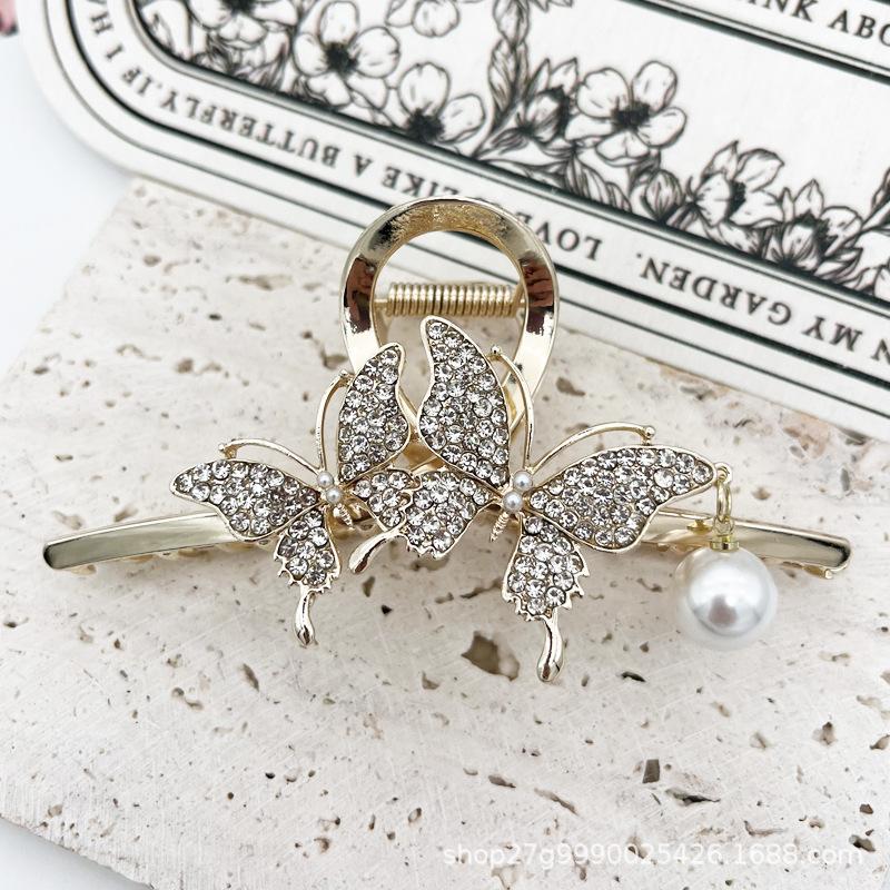 새로운 엔트리 라이트 럭셔리 라인 석 진주 잡아 클립 다이아몬드 INS 스타일 패션 잡아 클립 백 헤드 머리핀 합금 헤어 그랩 클립