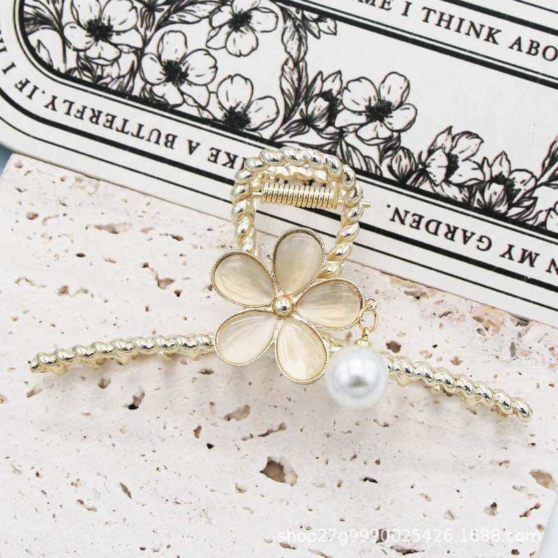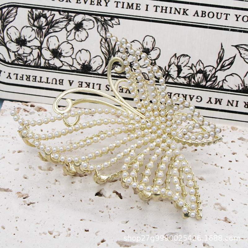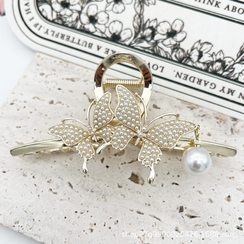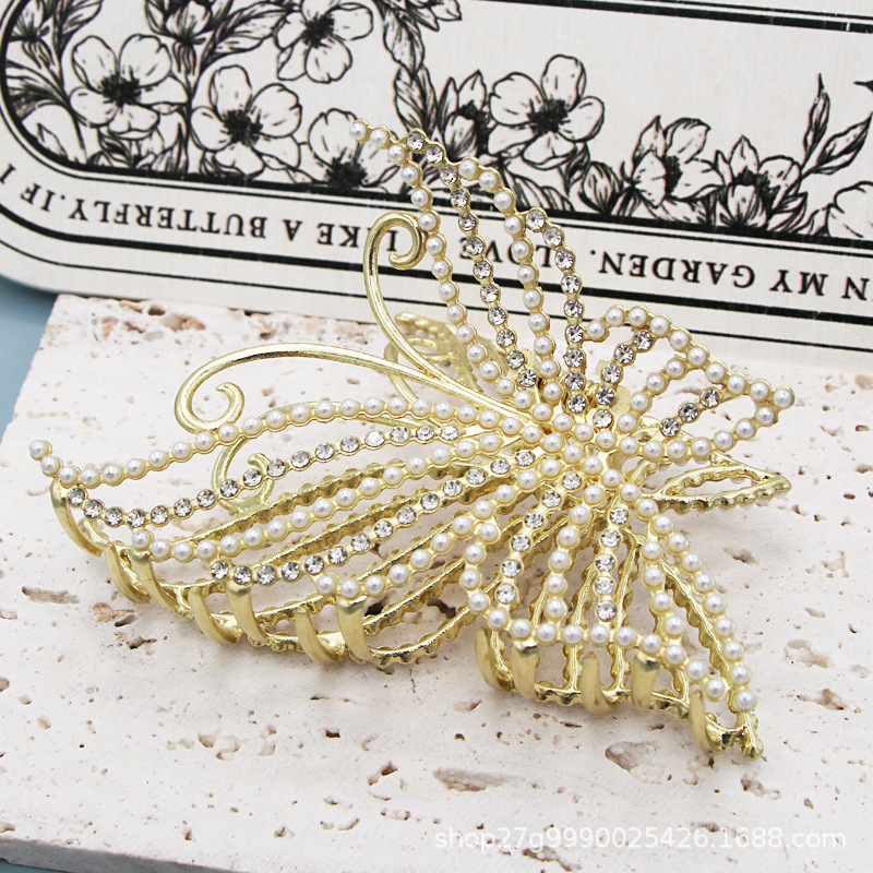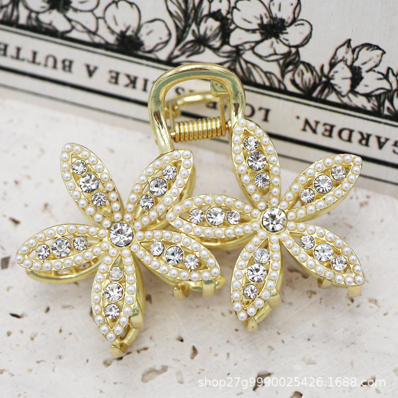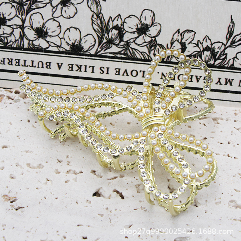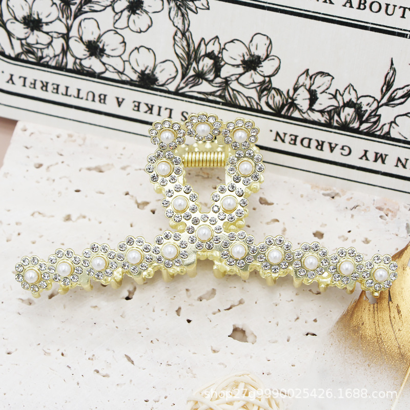 새로운 엔트리 라이트 럭셔리 라인 석 진주 잡아 클립 다이아몬드 INS 스타일 패션 잡아 클립 백 헤드 머리핀 합금 헤어 그랩 클립스토어 가기