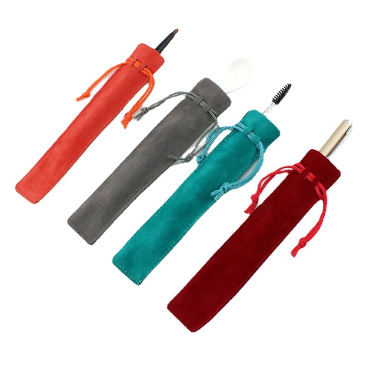 • 简约清新 化妆工具眉笔抽绳束口收纳袋 双面超纤绒布袋可加印logo