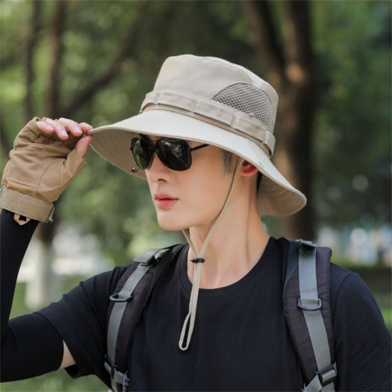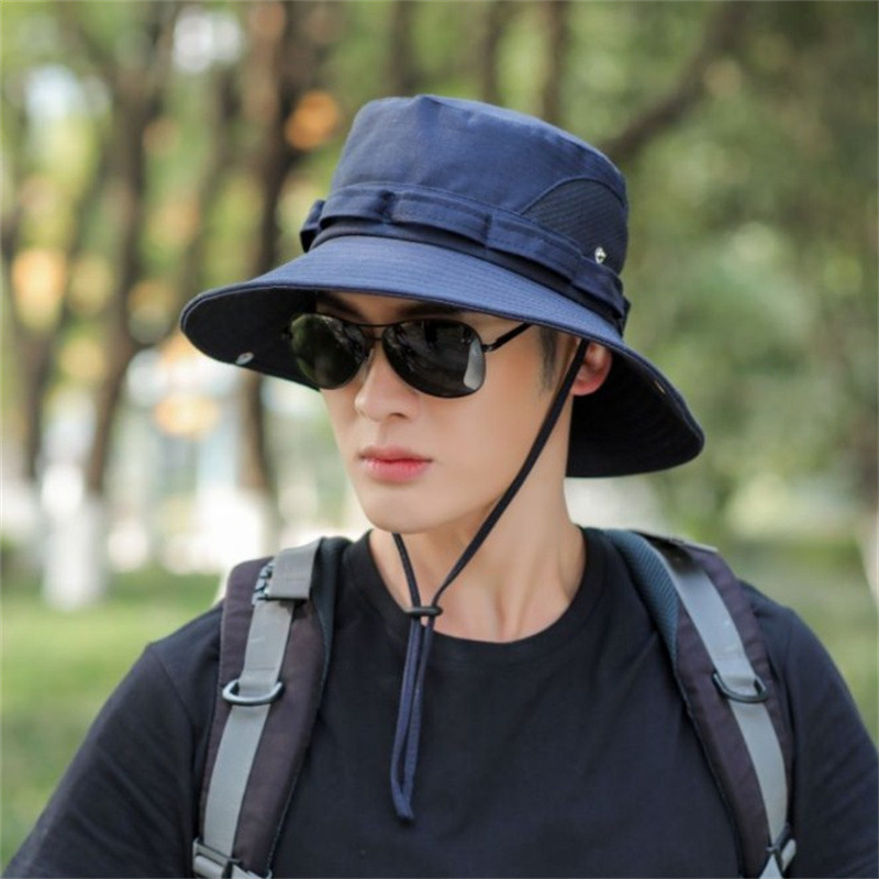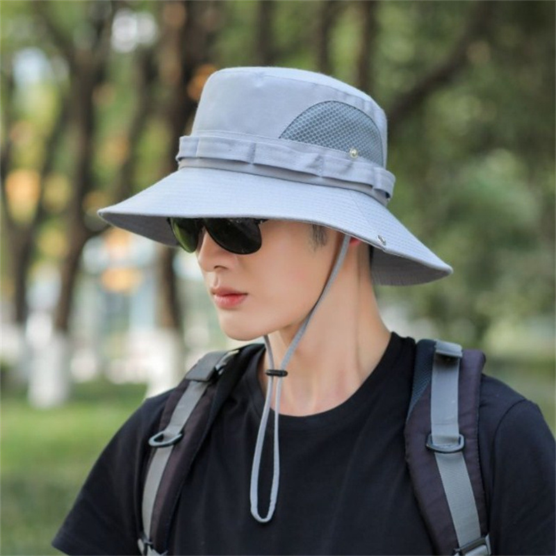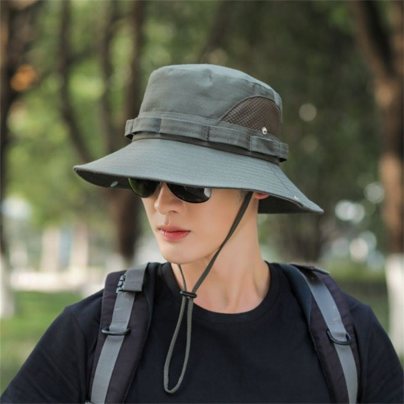 야외 등산 어부 모자 남성용 여름 자외선 차단제 통기성 그물 차양 모자 큰 챙 남성용 낚시 모자 자외선 차단