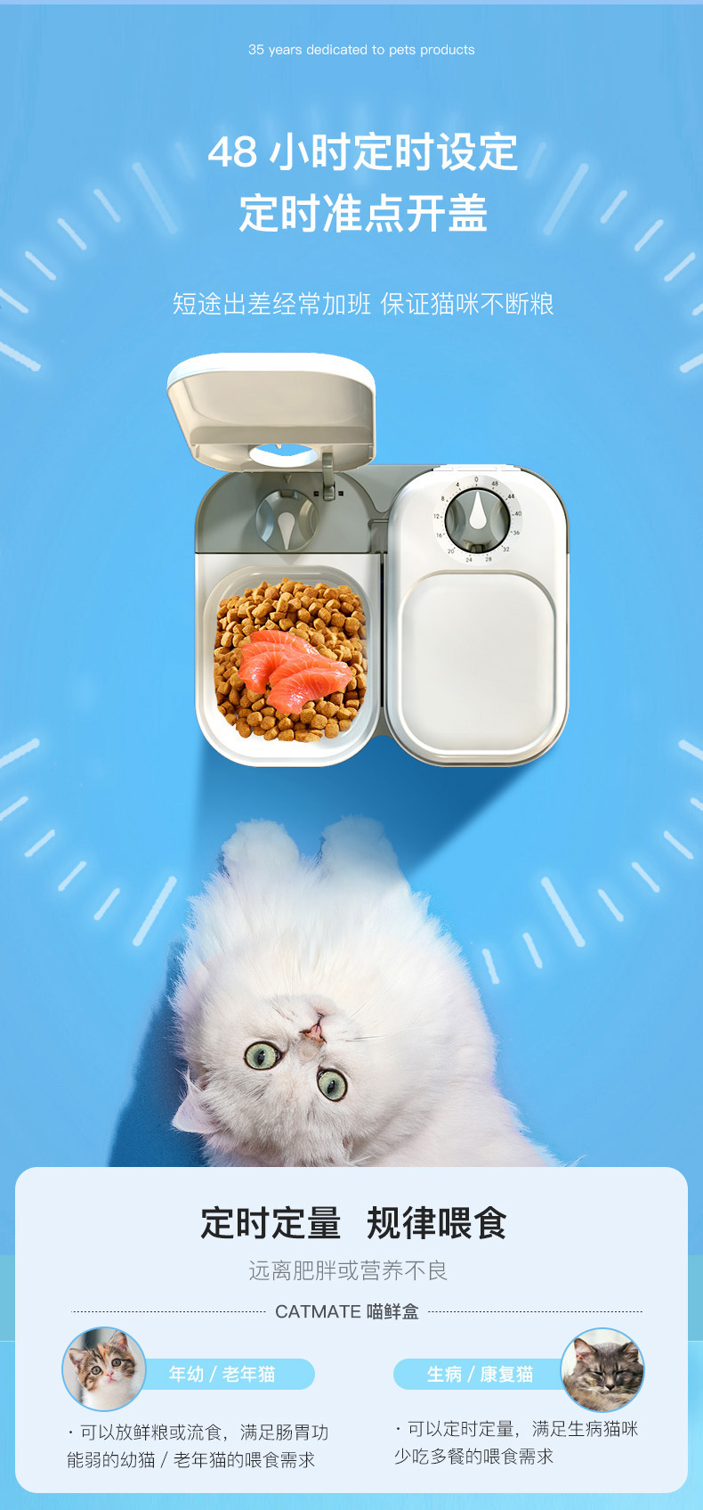 영국 Catmate 신선한 음식 피더 생 뼈 고양이 도시락 애완 동물 개 신선한 음식 2 식사 젖은 음식 타이밍 피더스토어 가기