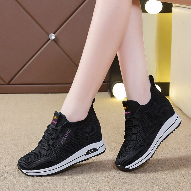 여성용 봄 신상 캐주얼 운동화, 키높이 패션 한국 스타일 통기성 경량 러닝화 여성화 도매스토어 가기