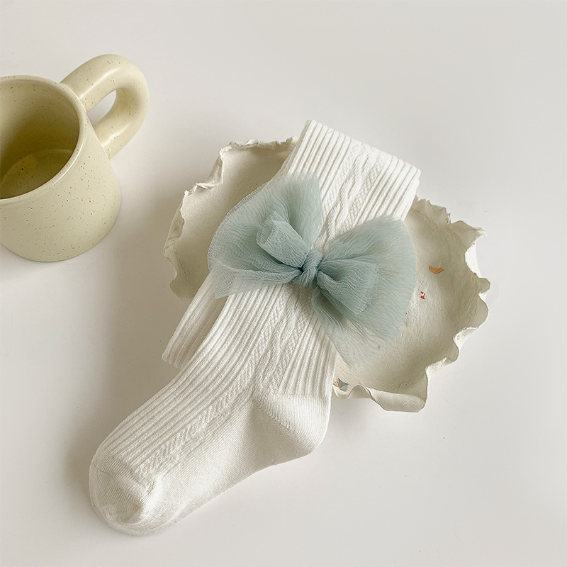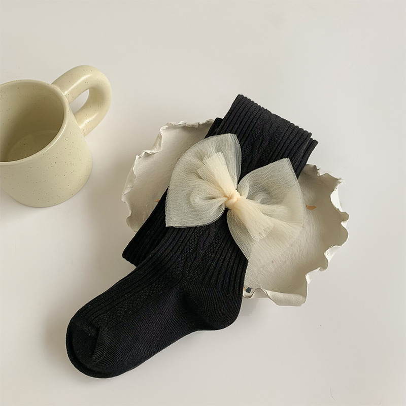 새로운 어린이 팬티 스타킹 봄과 가을 얇은 소녀 대마 패턴 활 팬티 스타킹 흰색 아기 레깅스 양말