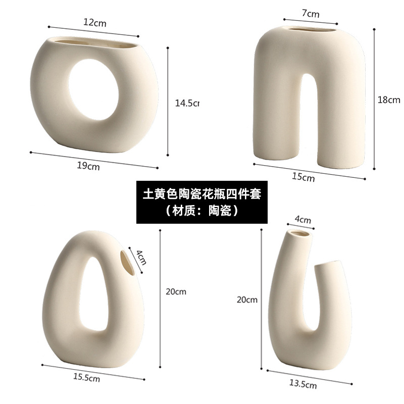 • 흙의 노란 도자기 꽃병 4 개 세트
