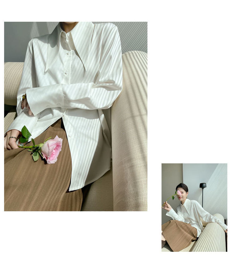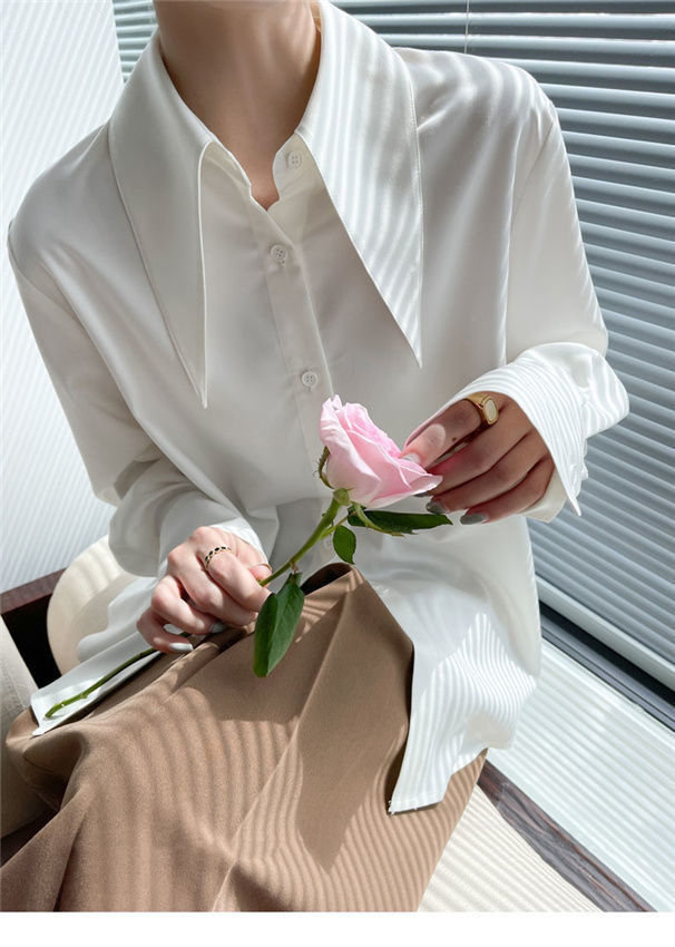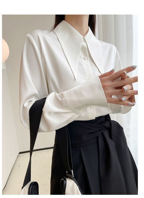 프렌치 긴팔 셔츠 여성의 가을 새로운 스타일 올매치 드레이프 셔츠 여성용 시크 라지 포인트 칼라 탑스토어 가기