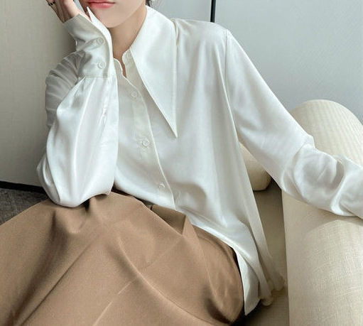 프렌치 긴팔 셔츠 여성의 가을 새로운 스타일 올매치 드레이프 셔츠 여성용 시크 라지 포인트 칼라 탑