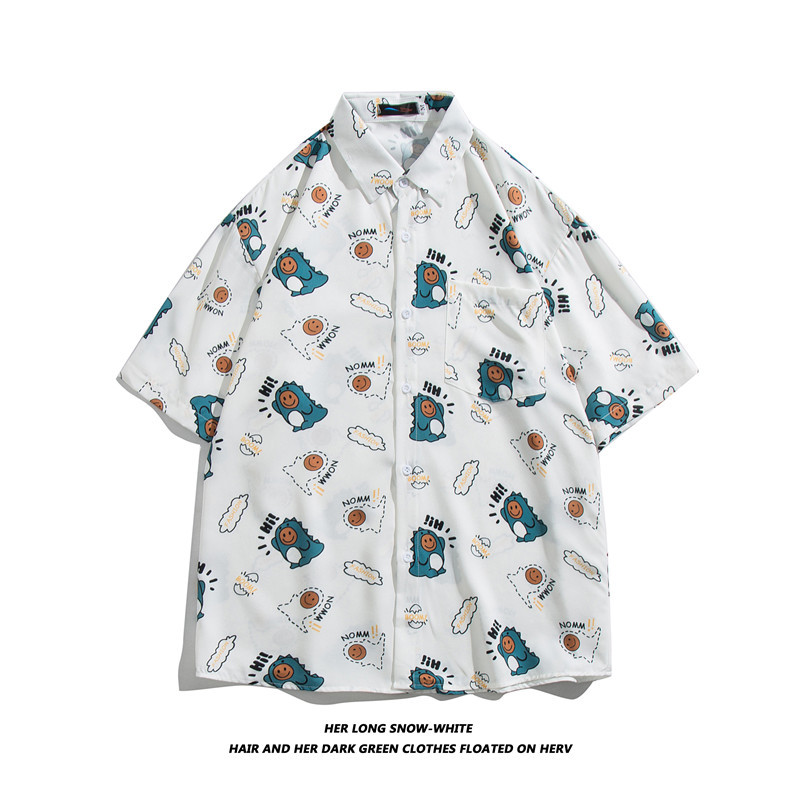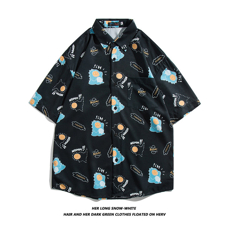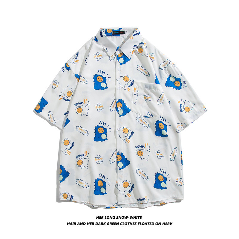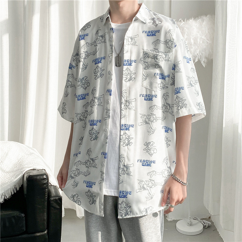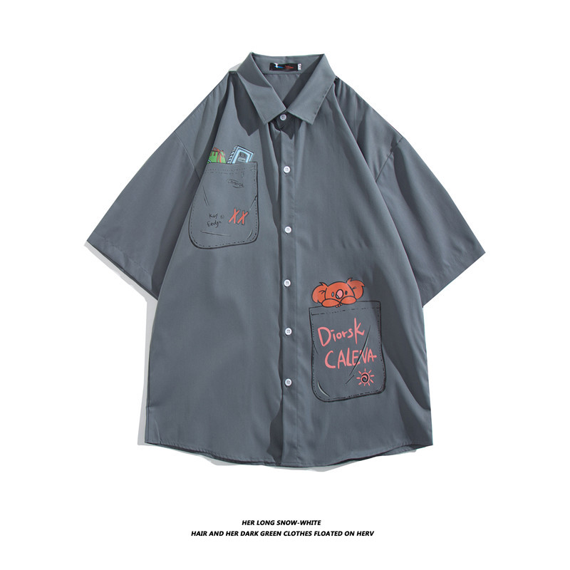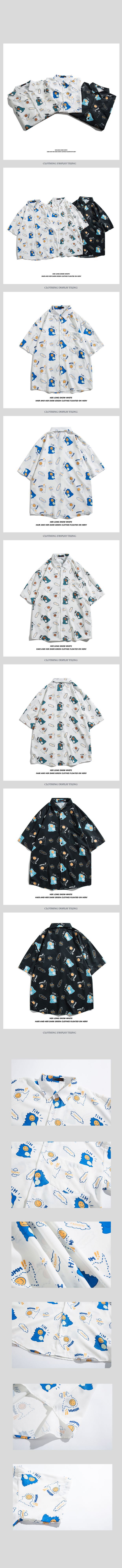 반팔 셔츠 남성용 컬리지 스타일 만화 캐릭터 탑 한국 스타일 트렌디 만능 아이템 인스 홍콩 스타일 일본 스타일 루즈핏 여름 셔츠스토어 가기