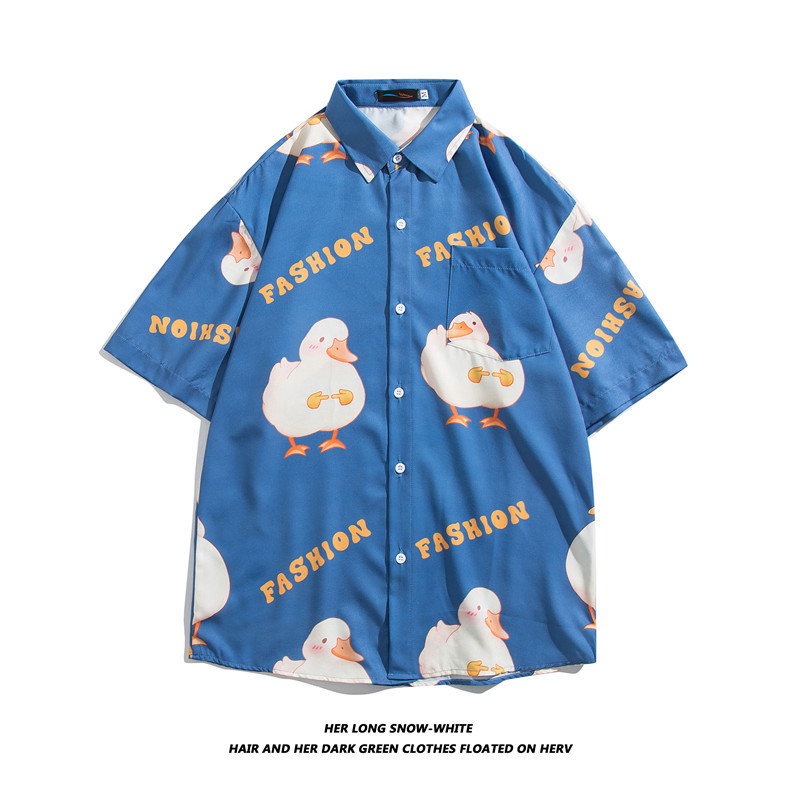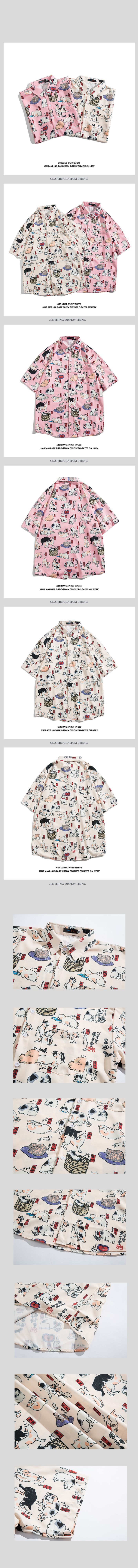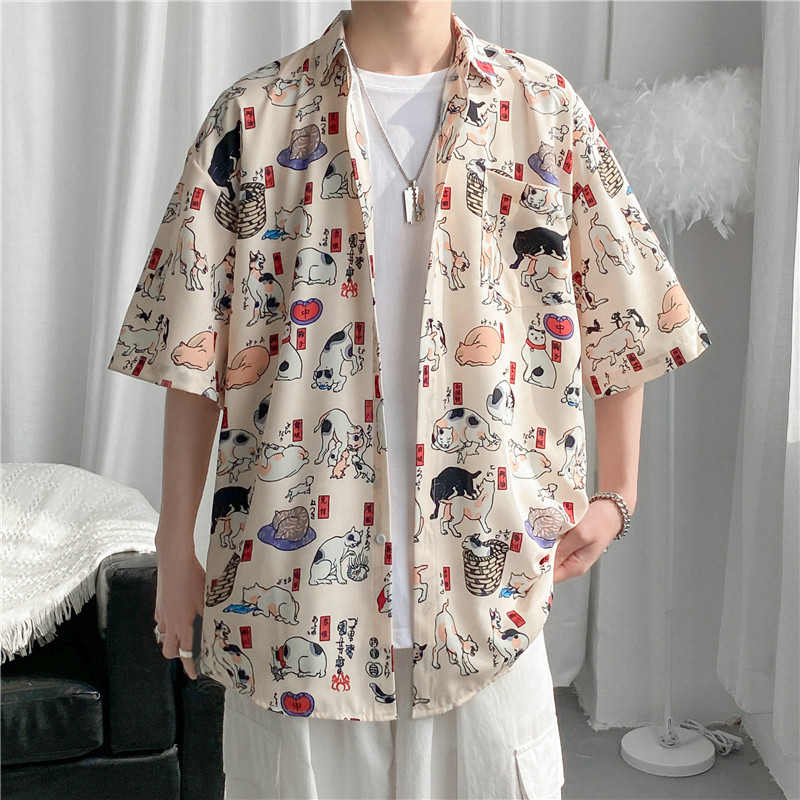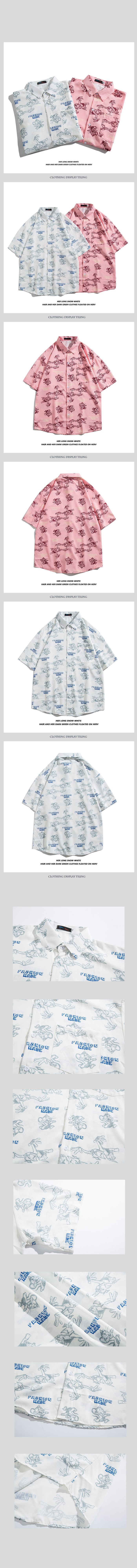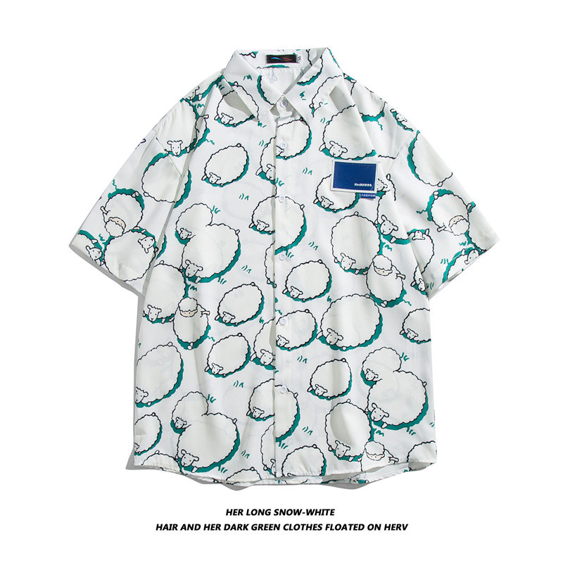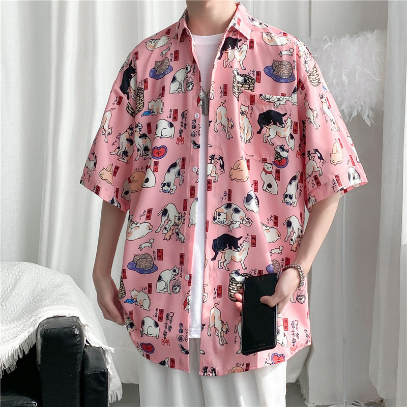 반팔 셔츠 남성용 컬리지 스타일 만화 캐릭터 탑 한국 스타일 트렌디 만능 아이템 인스 홍콩 스타일 일본 스타일 루즈핏 여름 셔츠스토어 가기
