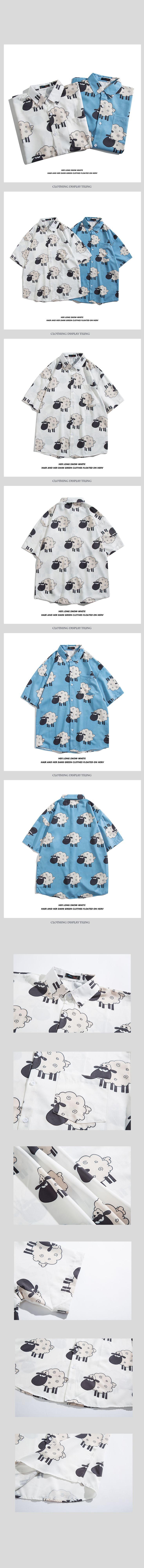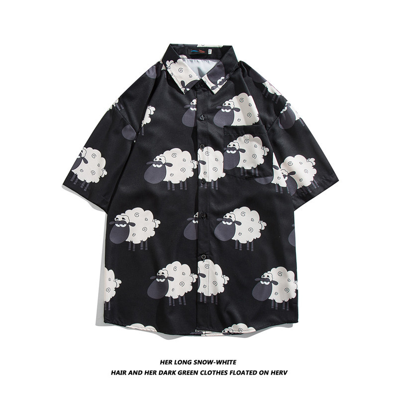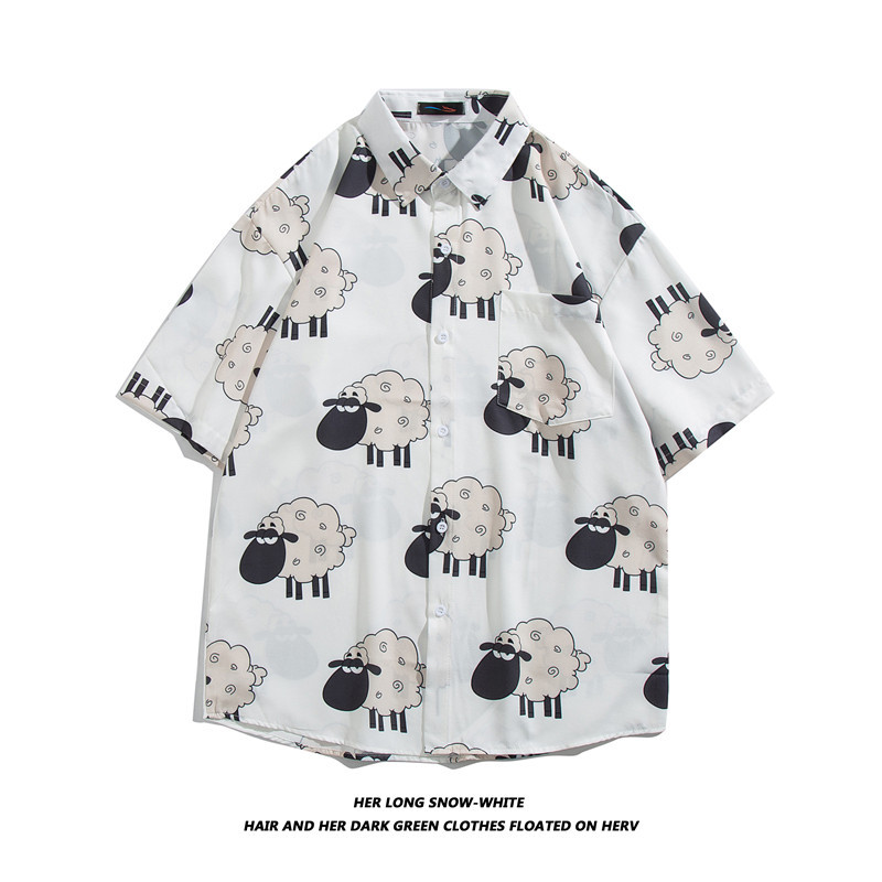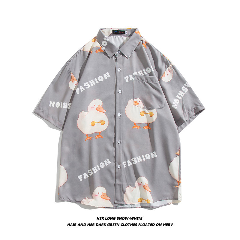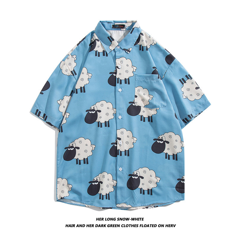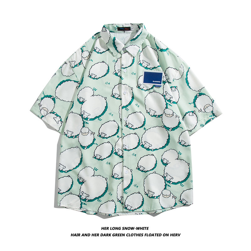 반팔 셔츠 남성용 컬리지 스타일 만화 캐릭터 탑 한국 스타일 트렌디 만능 아이템 인스 홍콩 스타일 일본 스타일 루즈핏 여름 셔츠스토어 가기