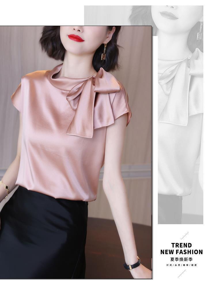 여성용 새틴 셔츠 여성용 디자인 센스 틈새 나비 축제 우아한 쉬폰 셔츠 탑 여성용 여름 블라우스스토어 가기