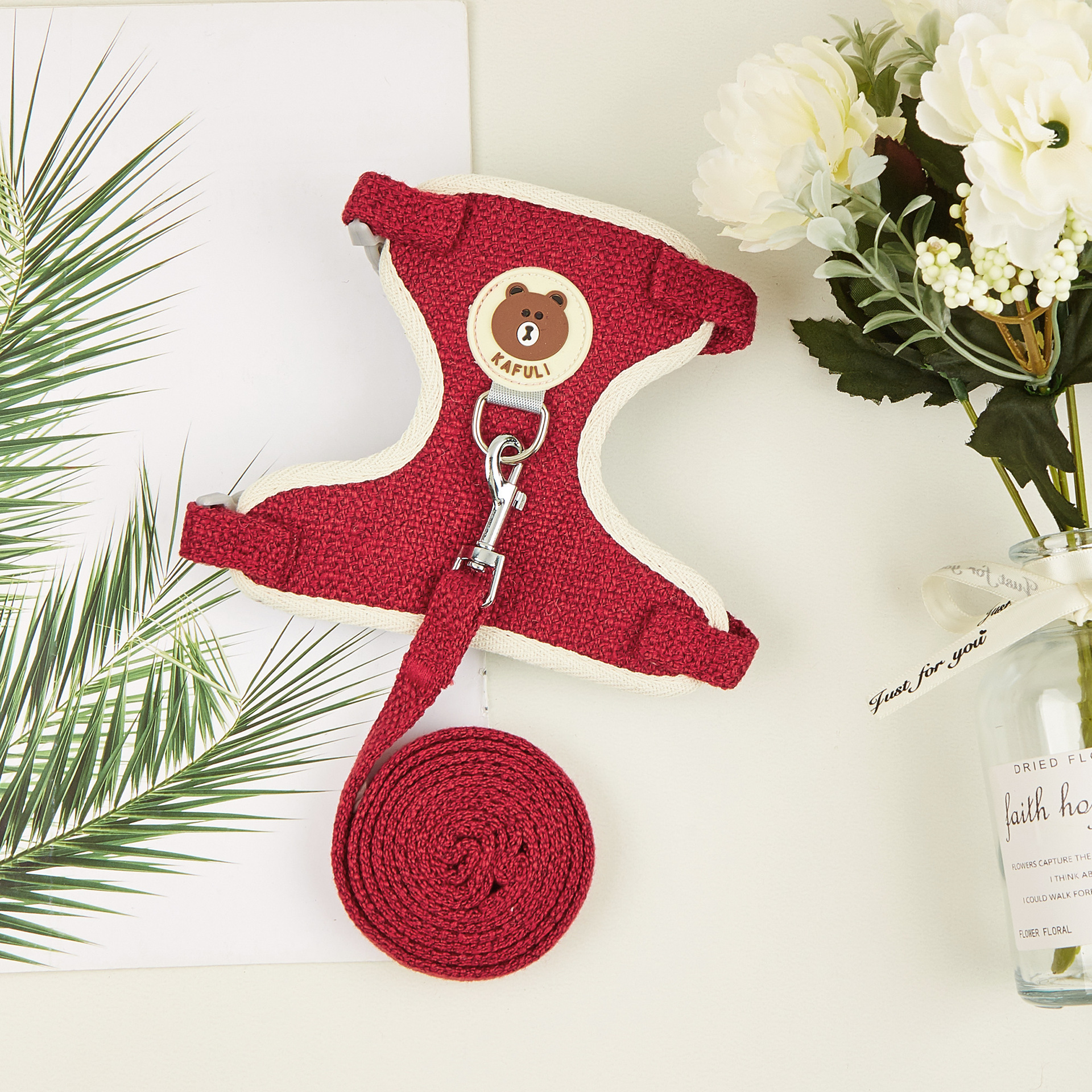 토끼 작은 애완 동물 외출 로프 개 고양이 네덜란드 돼지 옷 가슴 스트랩 조끼 만화 곰 견인 로프