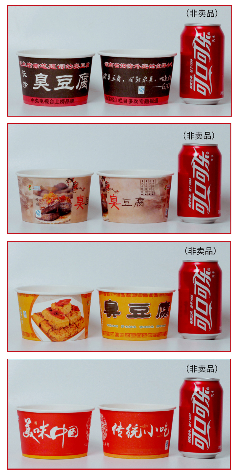 냄새 나는 두부 볶은 냉면 감자 튀김 떡 관동 요리 간식 패스트 푸드 테이크 아웃 포장 종이 그릇 일회용 도시락스토어 가기