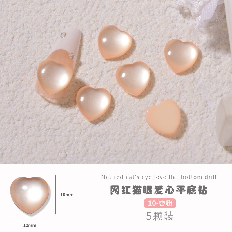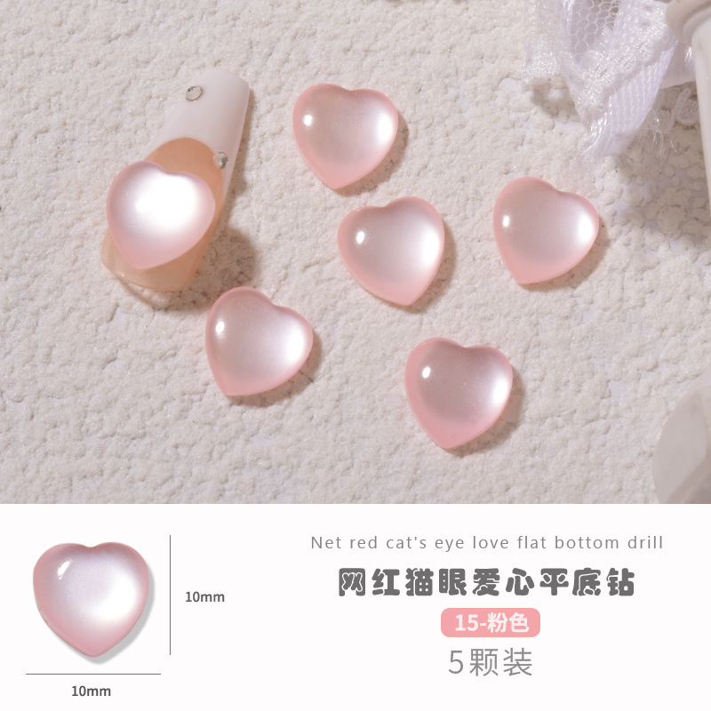 네일 아트 컬러 고양이 눈 보석 입체 네일 장식 다이아몬드 캔디 컬러 플랫 바닥 사랑 네일 다이아몬드 액세서리 5 개