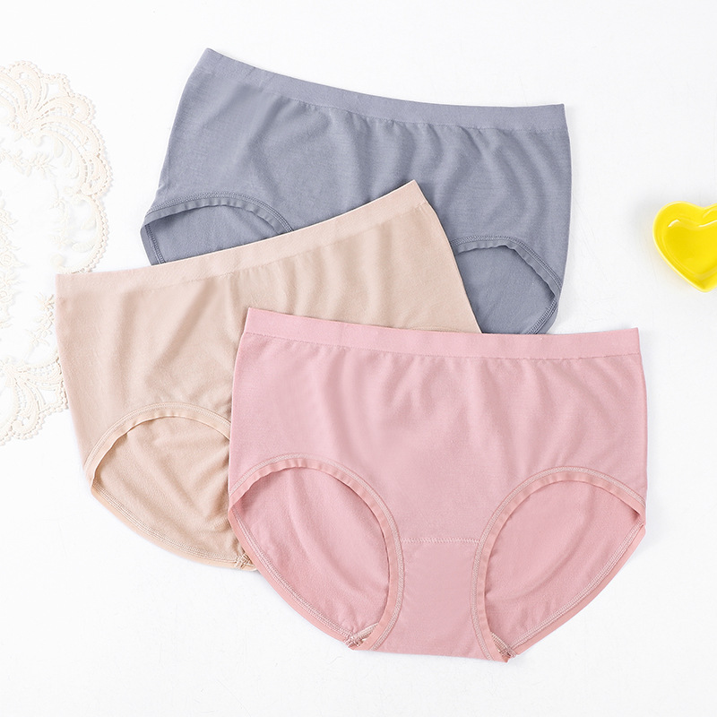 여성용 심리스 네이키드 엘라스틴 신축성 편안한 중간 허리 브리프, 단색 심플 피치 힙 여성 속옷, 봄 여름스토어 가기