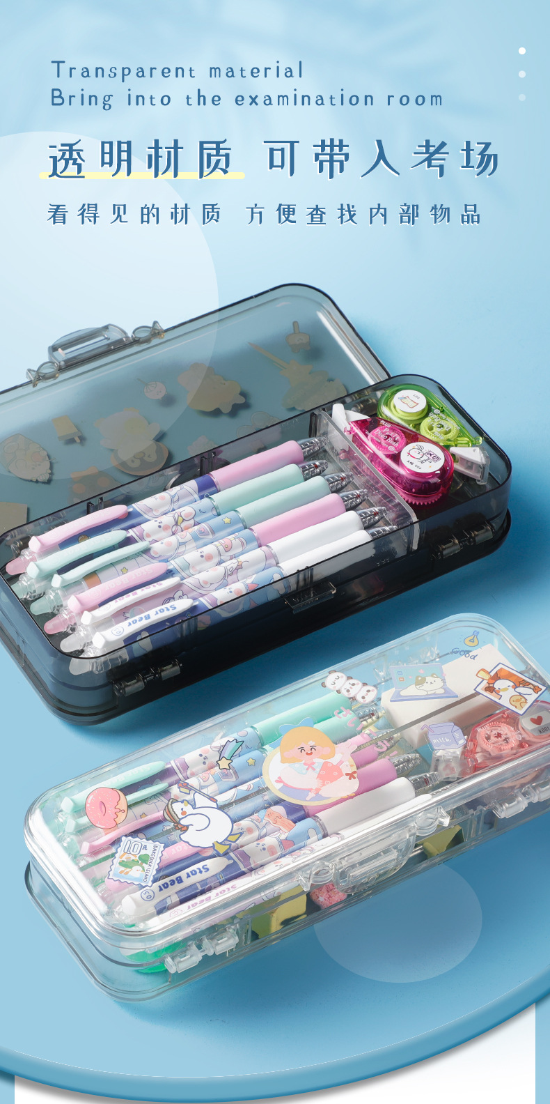 모닝유 투명 필통 대용량 문구함 학생용 이중 연필꽂이 문구 용품 시험 준비 수납