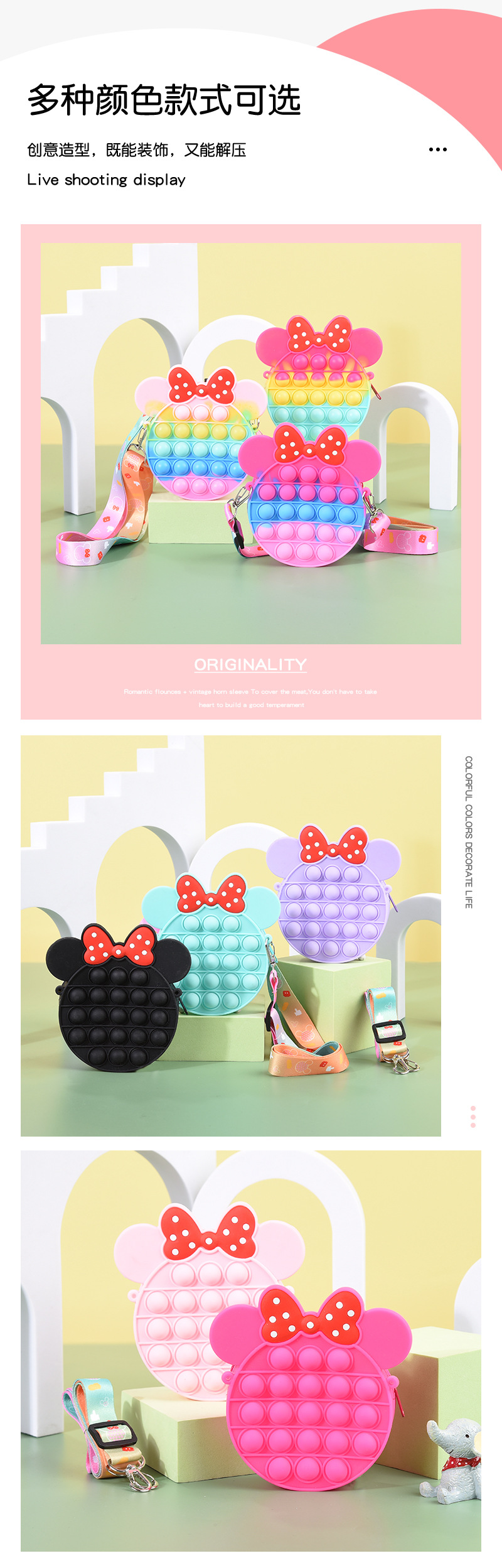 실리콘 동전 지갑 쥐 퇴치 전문가 스트레스 해소 버블 크로스백 어린이 학생용 작은 선물 버튼형 숄더백스토어 가기