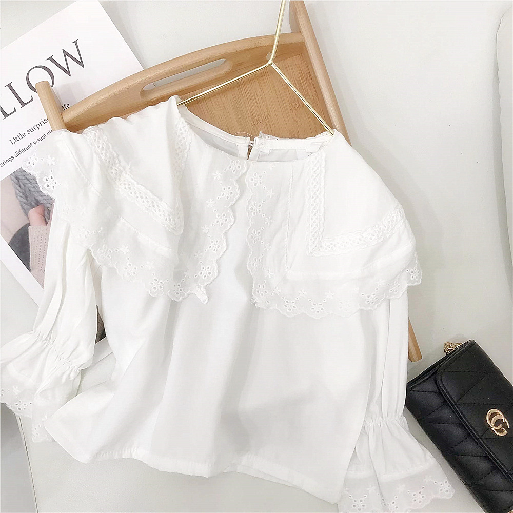 여자 화이트 레이스 셔츠 봄과 가을 새로운 어린이 공주 긴 소매 인형 셔츠 베이스 탑 인터넷 연예인 셔츠스토어 가기