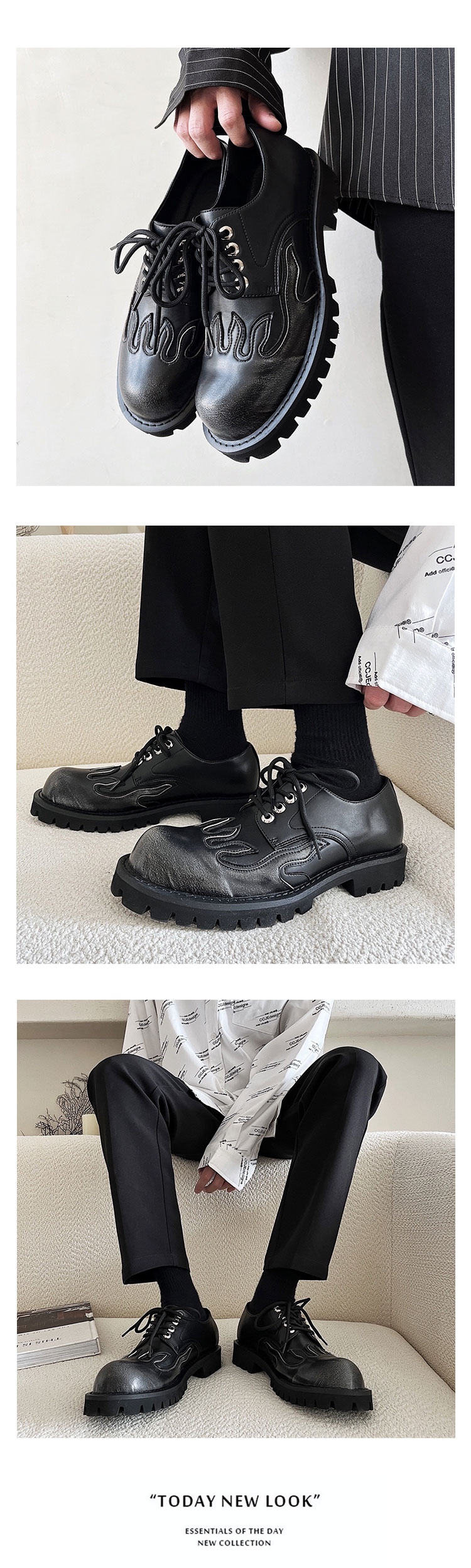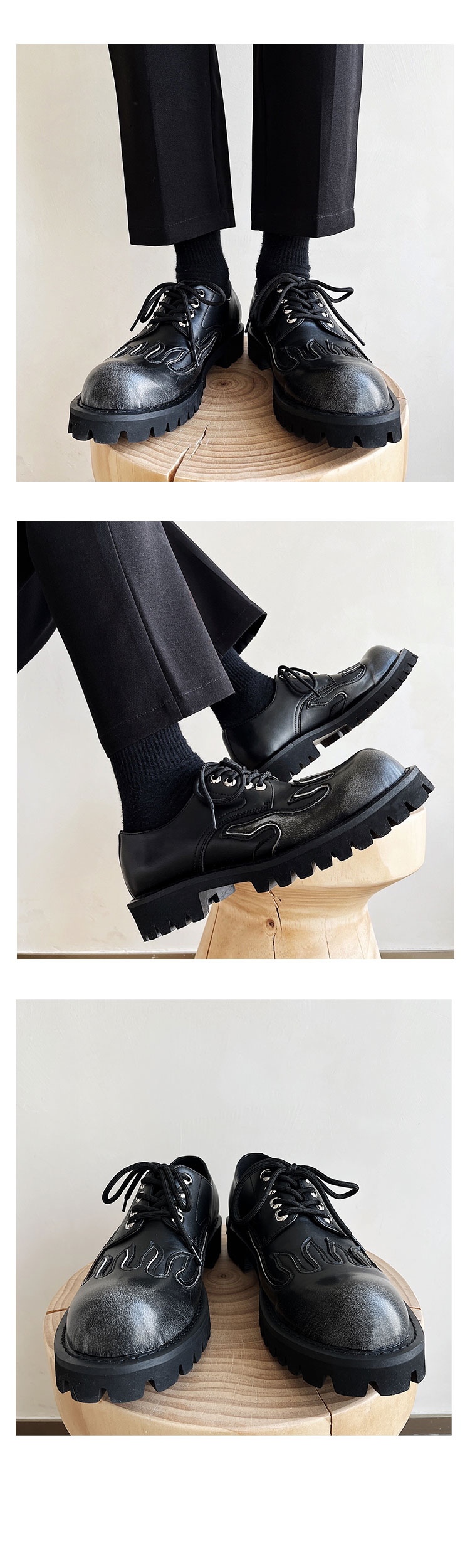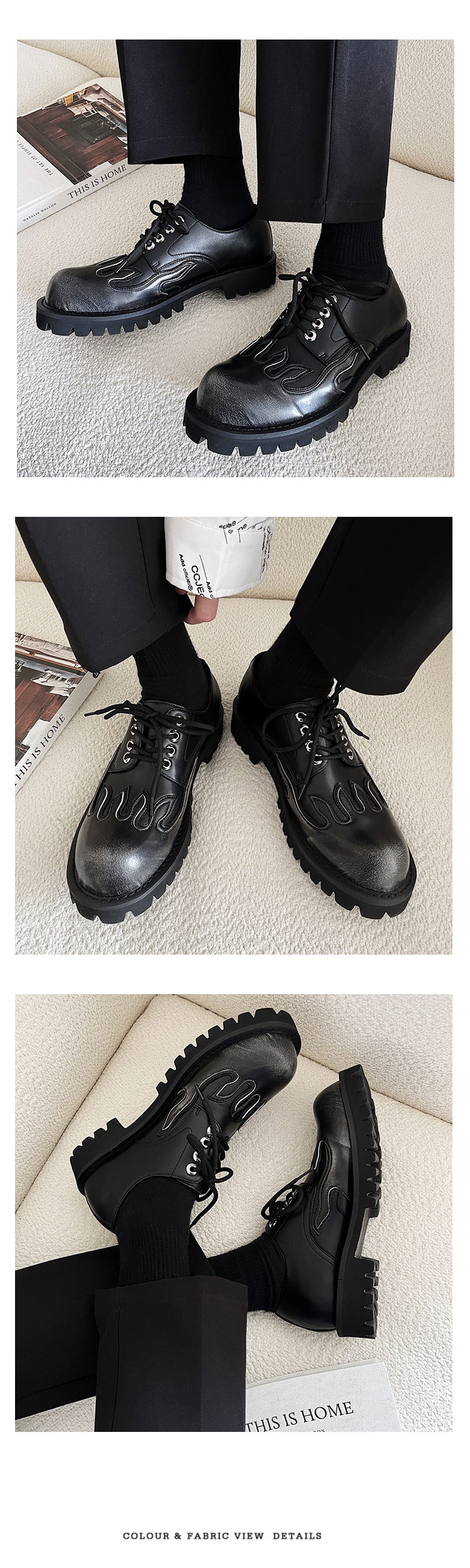 2022新款男小众火焰拼接翘头低帮鞋擦色做旧小皮鞋厚底增高皮鞋