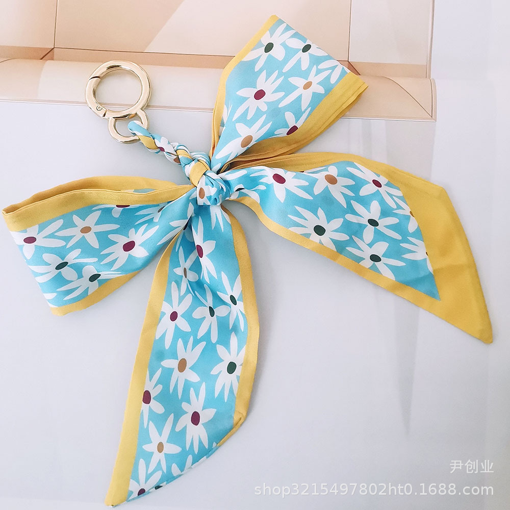 新款山茶花丝巾蝴蝶结钥匙扣挂件清新韩版女生包包挂饰汽车钥匙扣