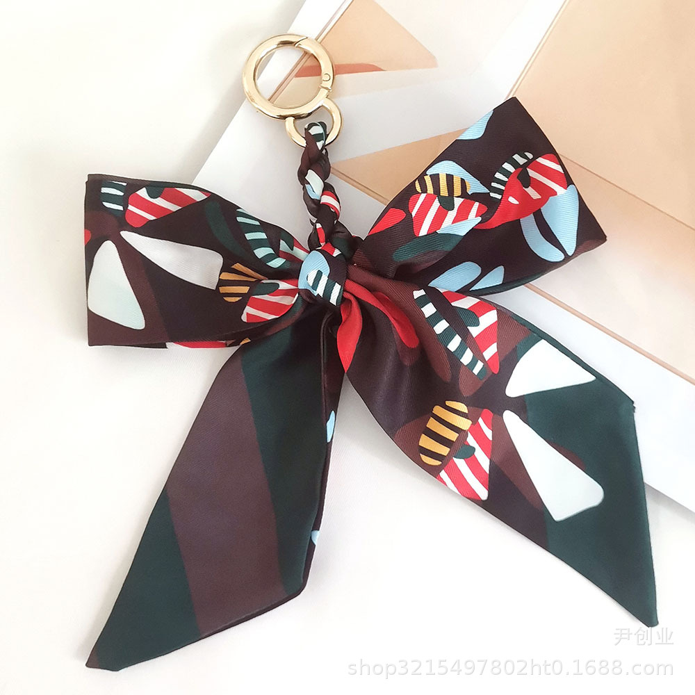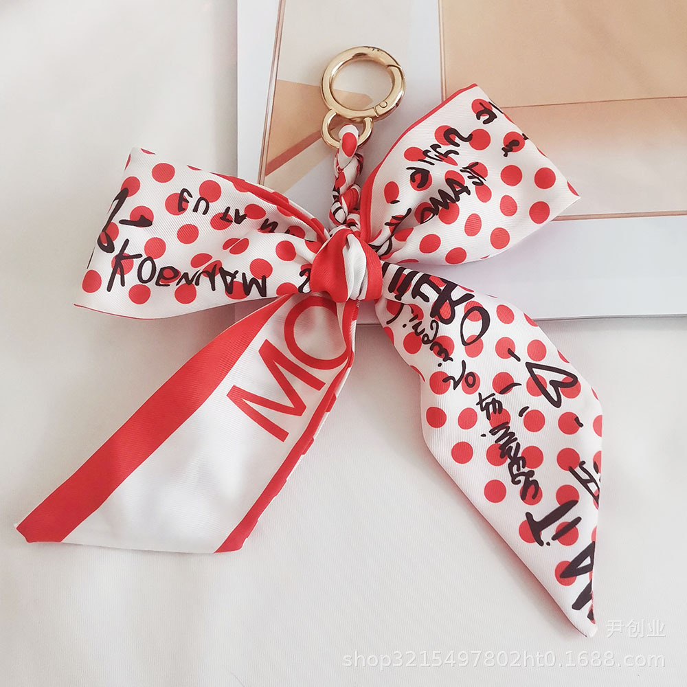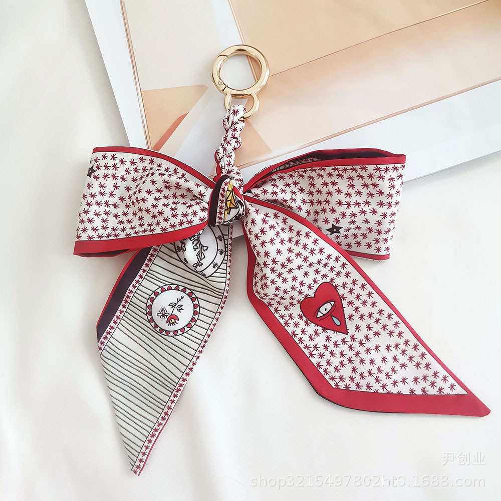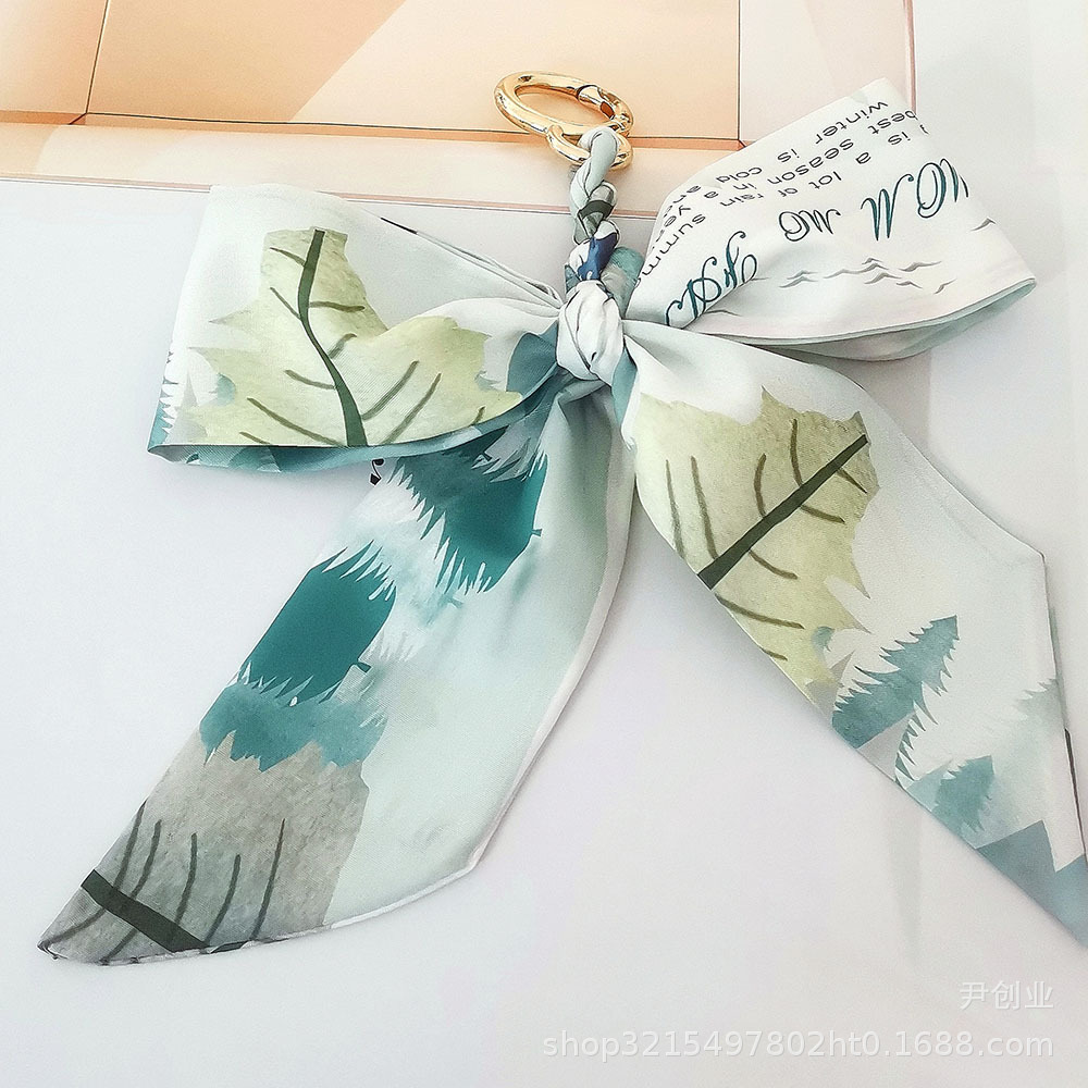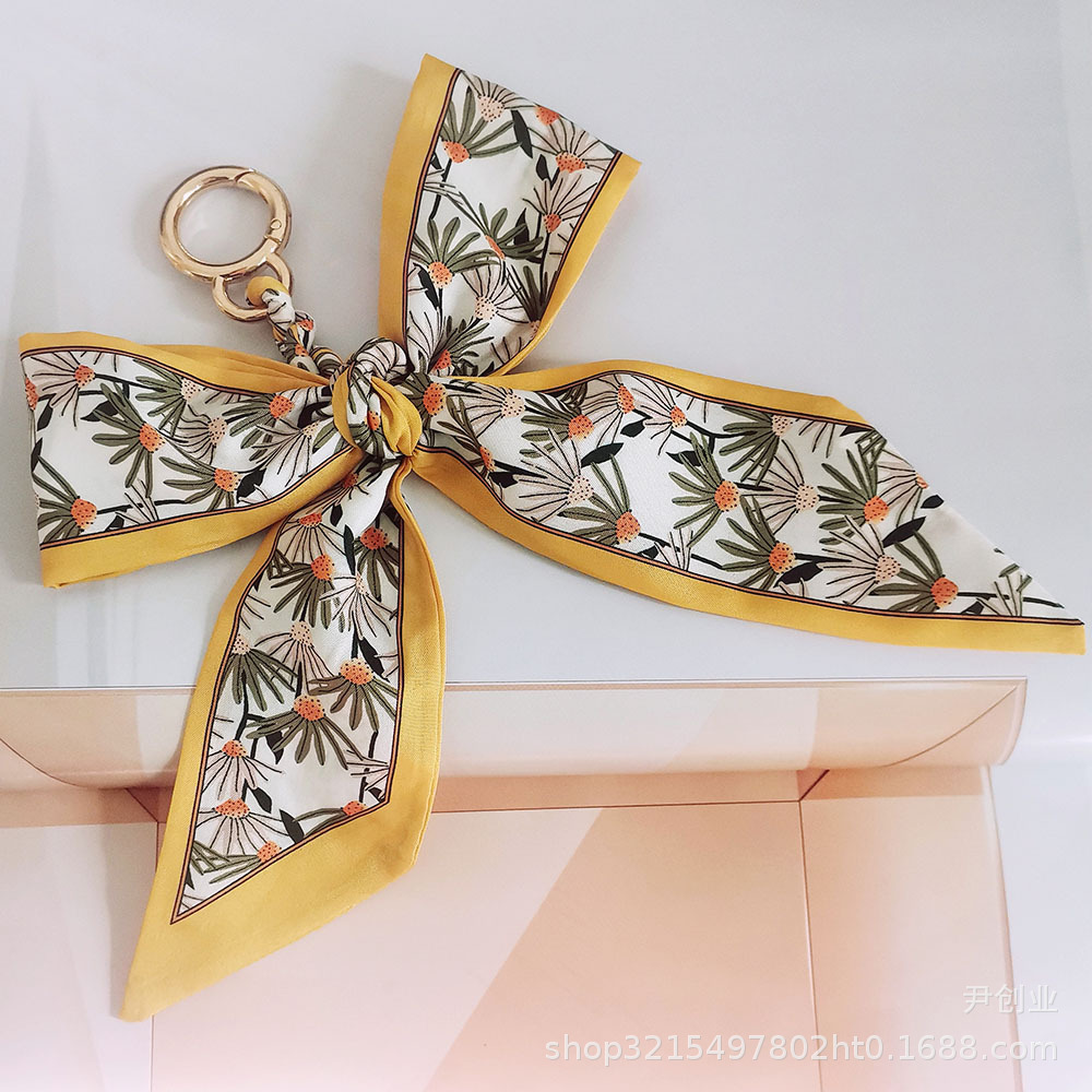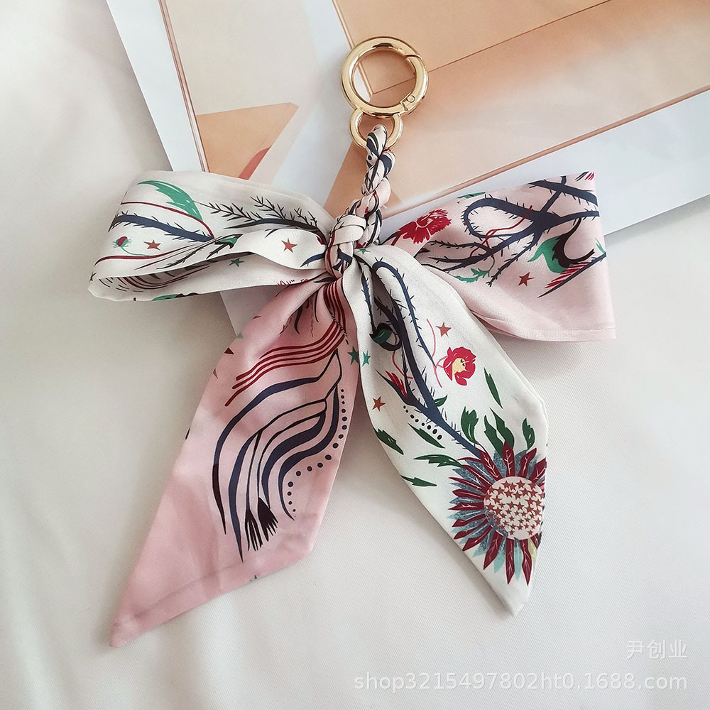 새로운 동백 실크 스카프 활 키 체인 펜던트 신선한 한국식 소녀 가방 장식품 자동차 키 체인스토어 가기