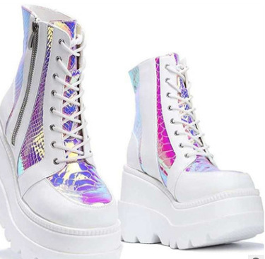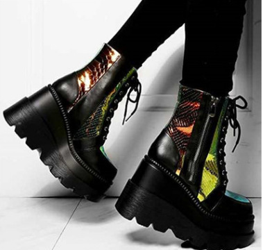 독립 역 년 아마존 가을과 겨울 새로운 하이탑 머핀 신발 여성 컬러 매칭 레이스 업 플러스 사이즈 유럽과 미국 여성 신발 재고스토어 가기