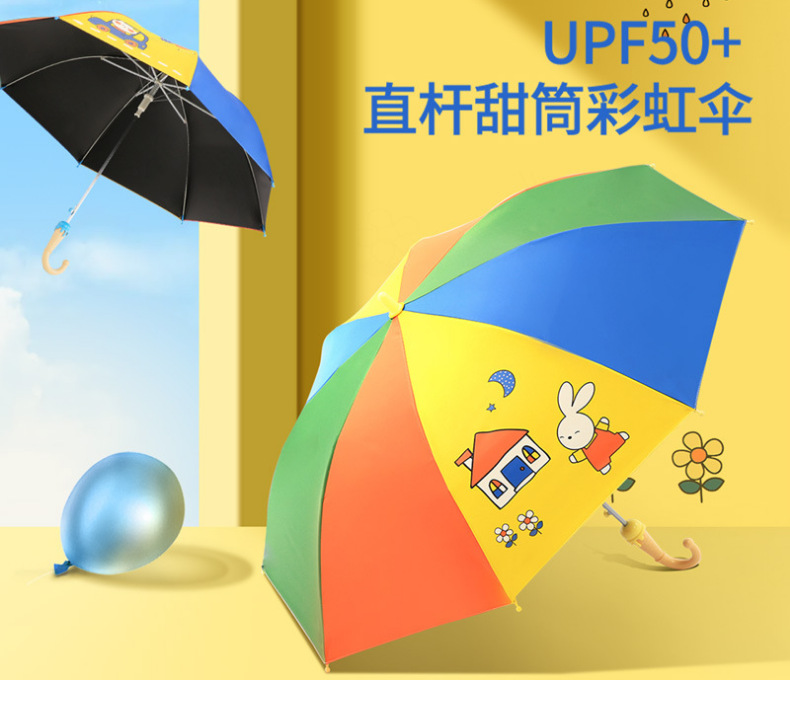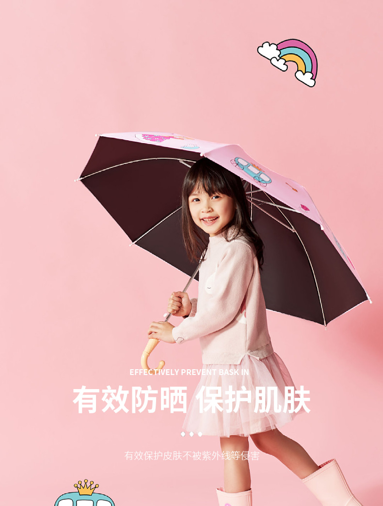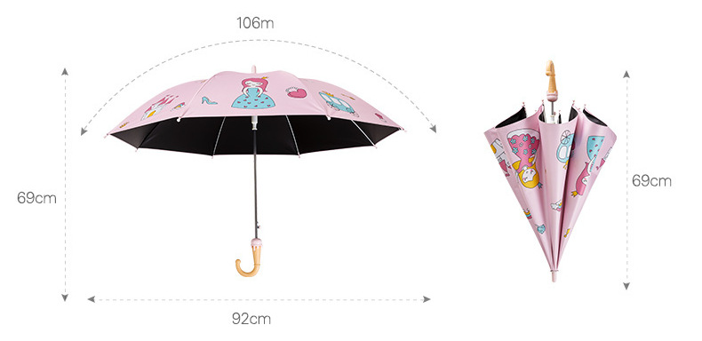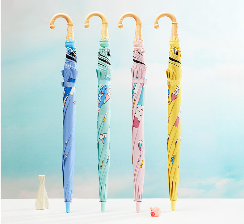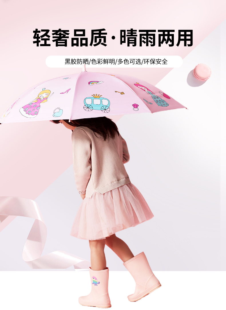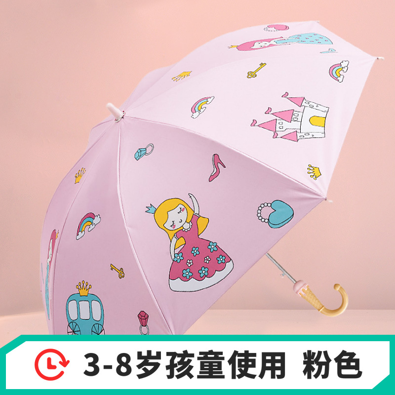 파라다이스 우산 우산 스트레이트 핸들 반자동 어린이 초등학교 유치원 소년과 소녀를위한 귀여운 맑고 비 이중 사용 양산 우산