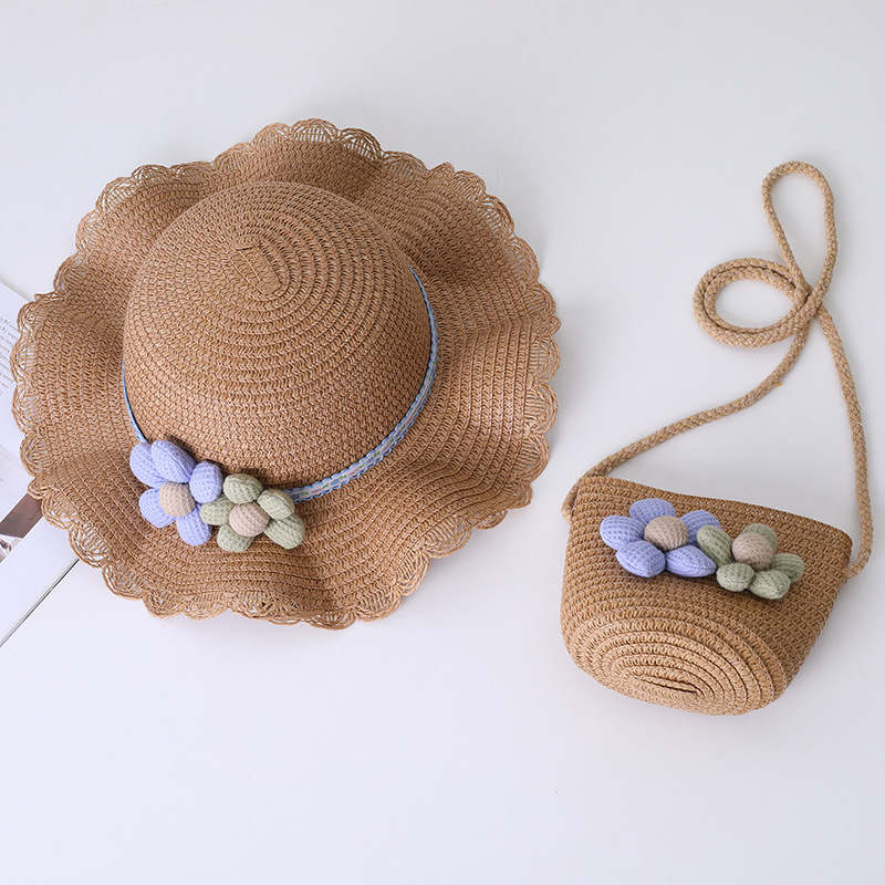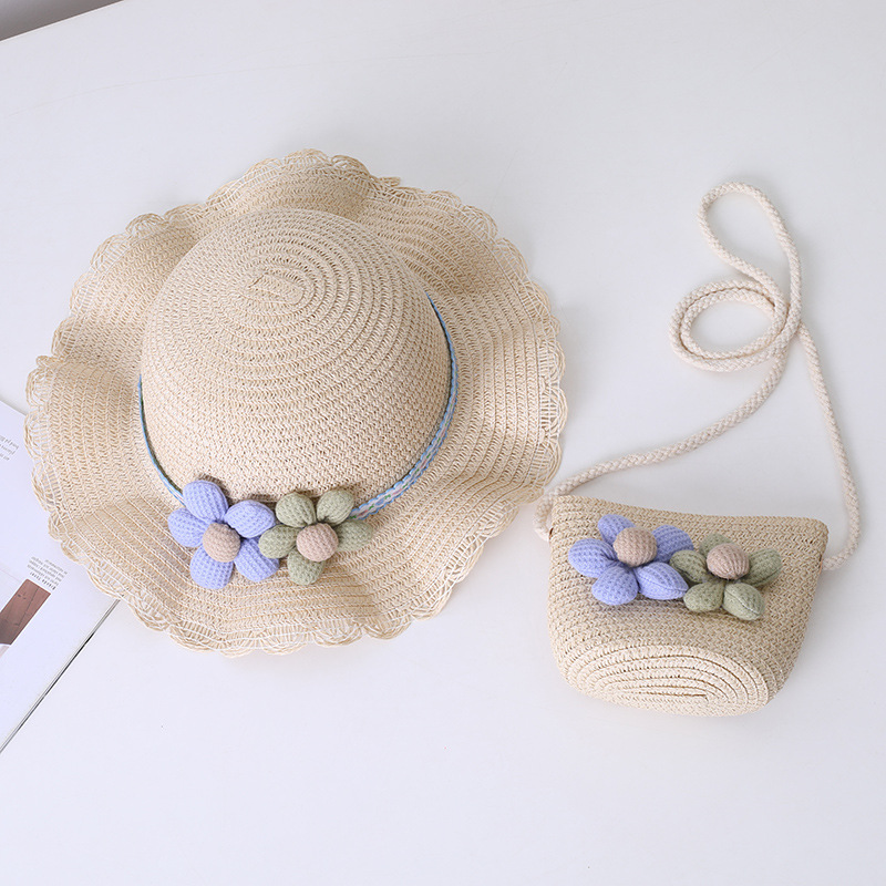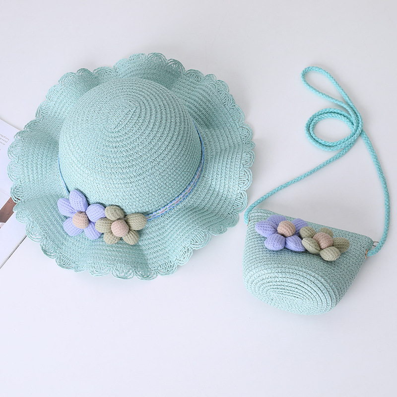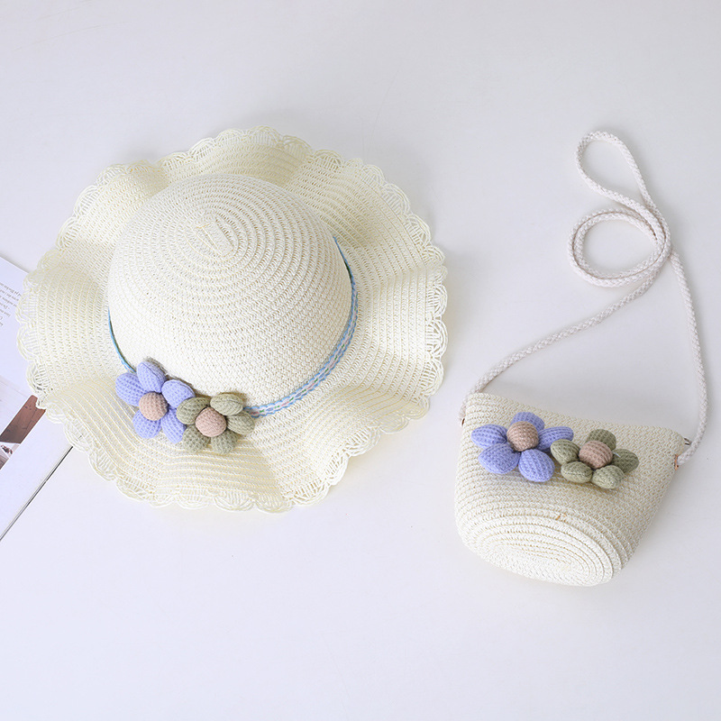 어린이 태양 모자 소녀 여름 새로운 밀짚 모자 가방 세트 부모-자식 태양 모자 여름 공주 아기스토어 가기