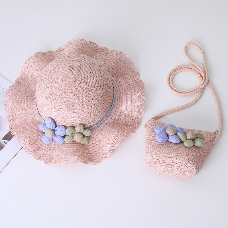 어린이 태양 모자 소녀 여름 새로운 밀짚 모자 가방 세트 부모-자식 태양 모자 여름 공주 아기