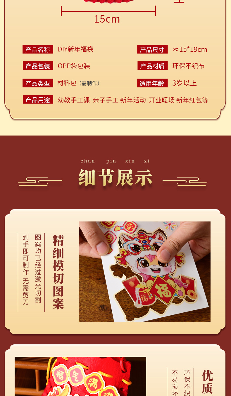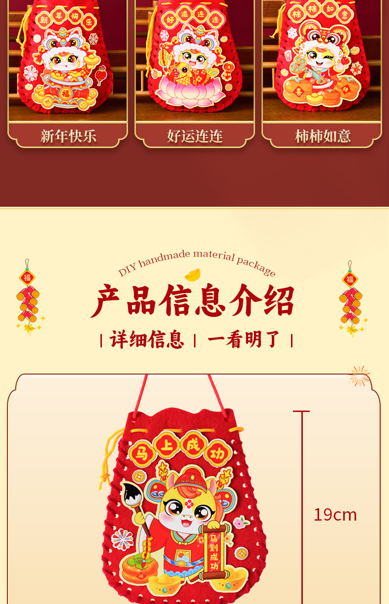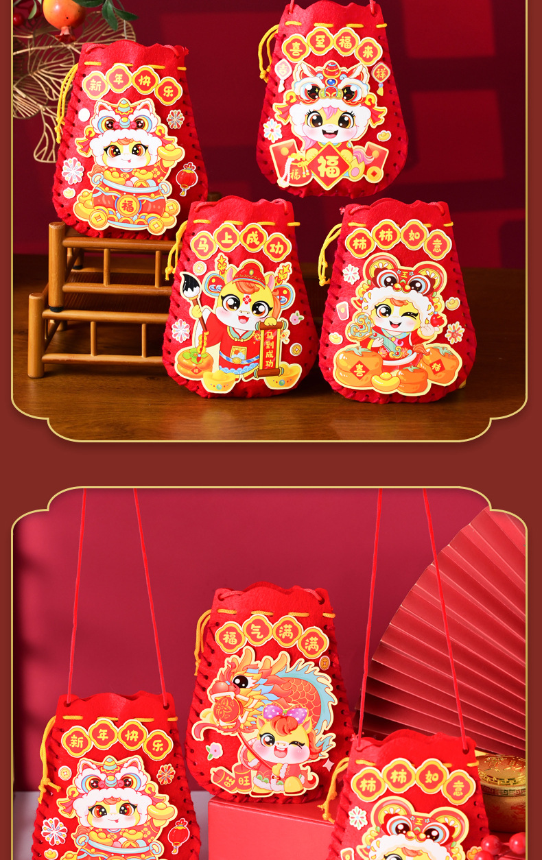 유치원 새해 가방 DIY 부직포 퍼즐 스티커 어린이 수제 배낭 호랑이의 해 창조적 인 선물스토어 가기