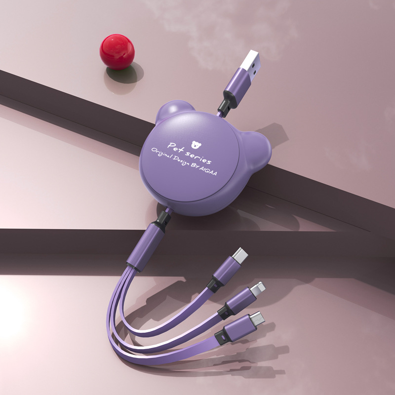텔레스코픽 데이터 라인 곰 더블 풀 소재 버전 1 드래그 3 유니버설 자동차 전화 충전 라인 선물 도매