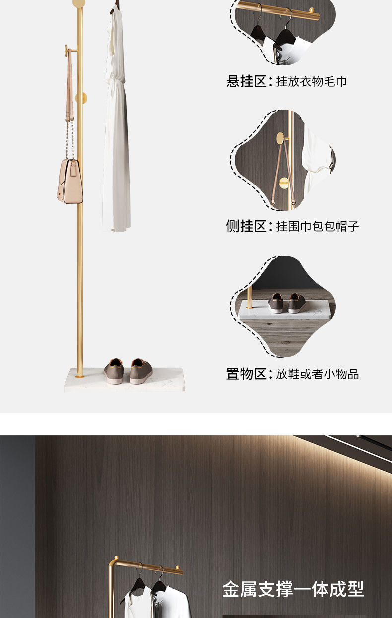 북유럽 스타일 옷걸이 바닥에 서있는 침실 간단한 가정용 수납 랙 조명 럭셔리 모던 로드 스타일 인터넷 인기 코트 랙스토어 가기