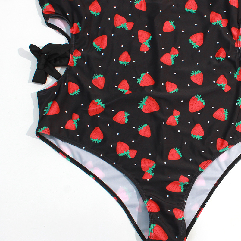 유럽과 미국 새로운 여성의 플러스 사이즈 플러스 뚱뚱한 원피스 수영복 인쇄 중공 스트랩 AliExpress 크로스 보더 섹시한 수영복