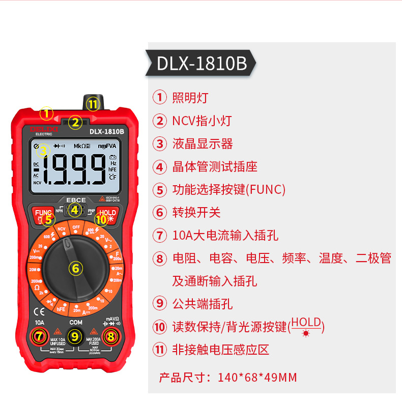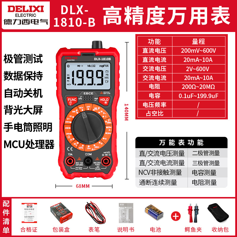 Delixi 새로운 멀티 미터 고정밀 지능형 디지털 미터 전기 기사 유지 보수 연소 방지 전류 전압계 도매