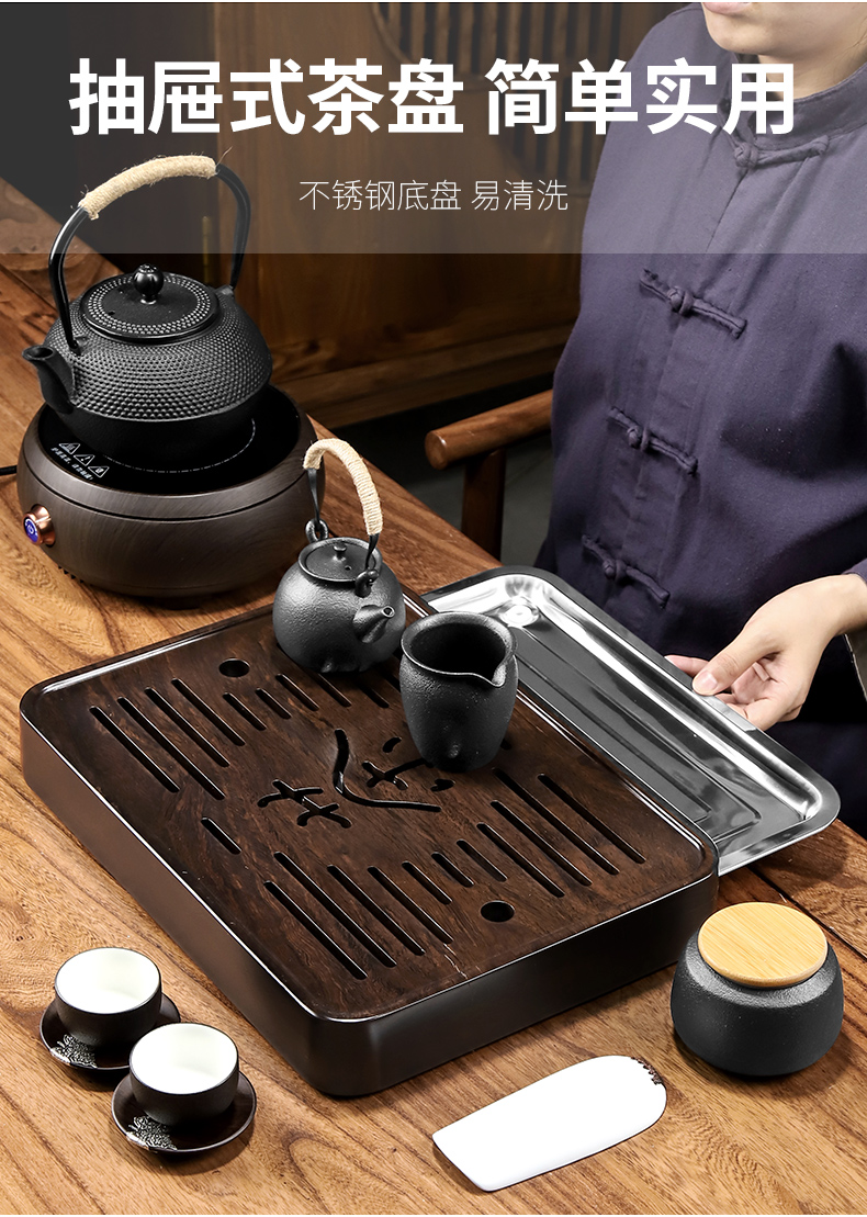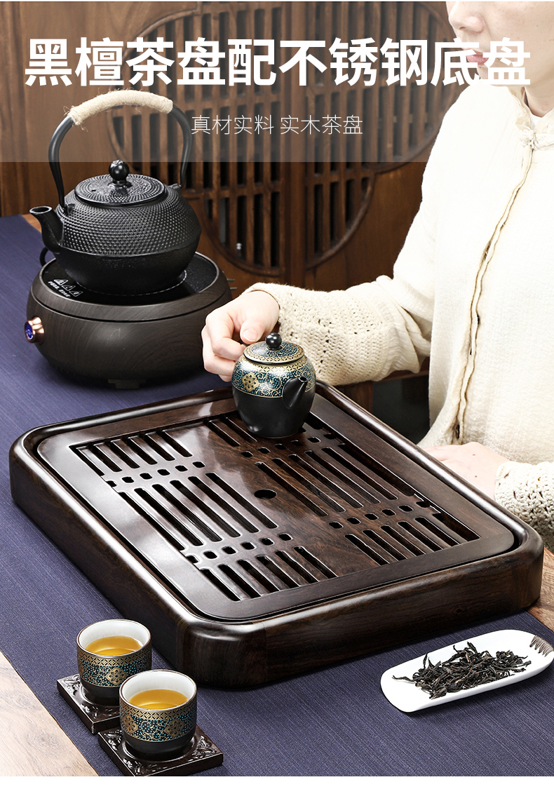 흑단 티 트레이 단단한 나무 티 테이블 가정용 작은 티 테이블 작은 빛 럭셔리 현대 티 세트 트레이 작은 티 트레이 한 사람을위한