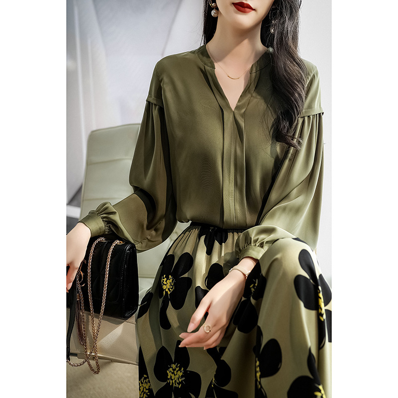 가을 2023 새로운 긴 소매 셔츠 디자인 감각 틈새 우아한 느슨한 캐주얼 빛 성숙한 스타일 랜턴 슬리브 셔츠