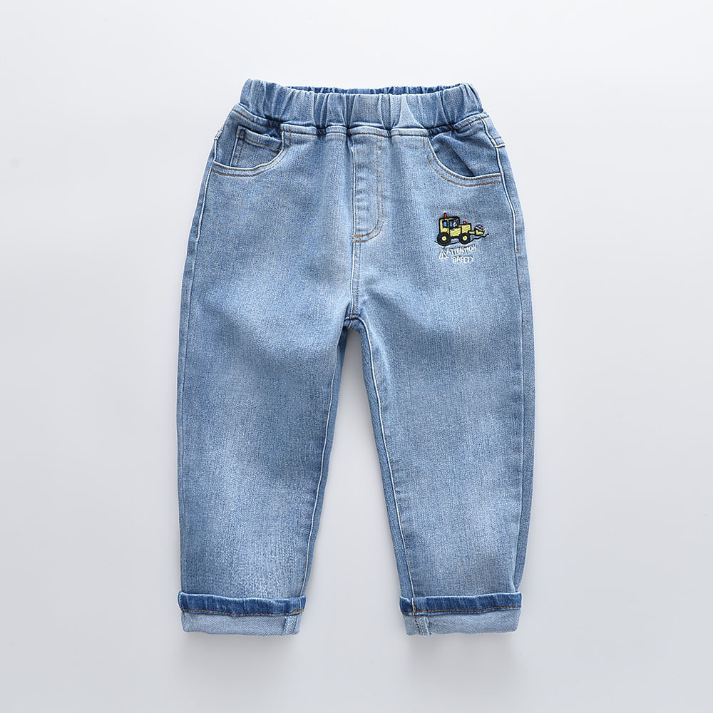 2022春季新款 挖掘机字母刺绣 男童水洗磨白牛仔长裤