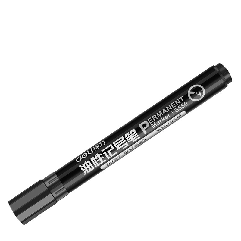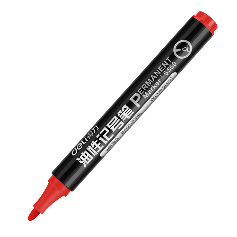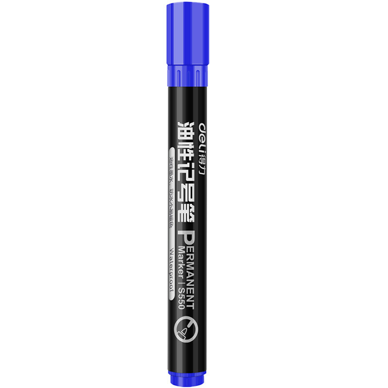 此商品为单头记号笔,不易褪色,书写顺滑,笔头耐磨速干,笔杆长度:14CM。每盒10支装。共3种颜色,红黑蓝,可用于日常记号标记用,快递物流等。 质量稳固,正品得力,价格优惠,可放心购买。