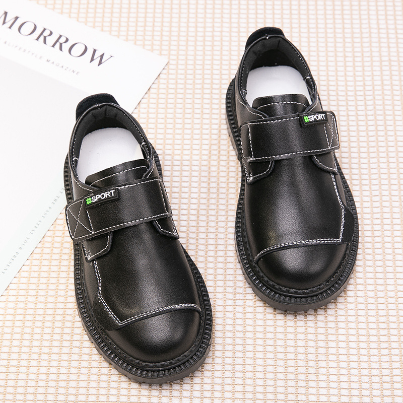 소년 가죽 신발 어린이 성능 신발 2025 봄과 가을 어린이 신발 정품 가죽 부드러운 단독 영국 스타일 벨크로 블랙 신발스토어 가기