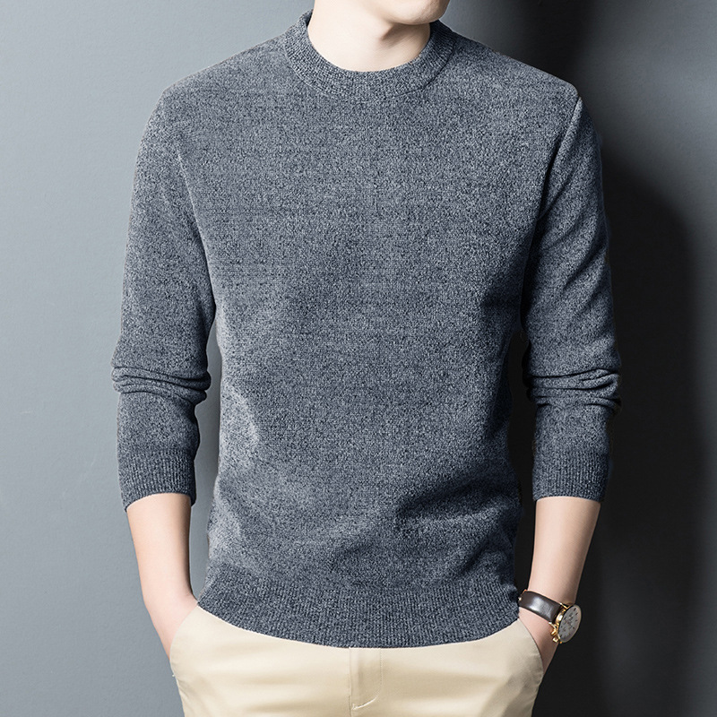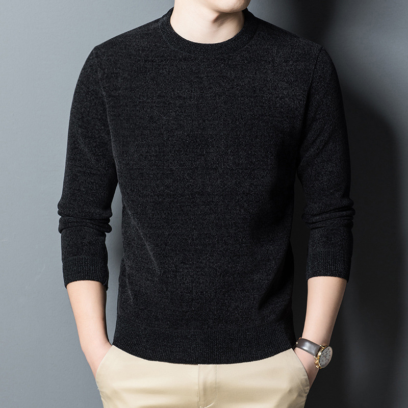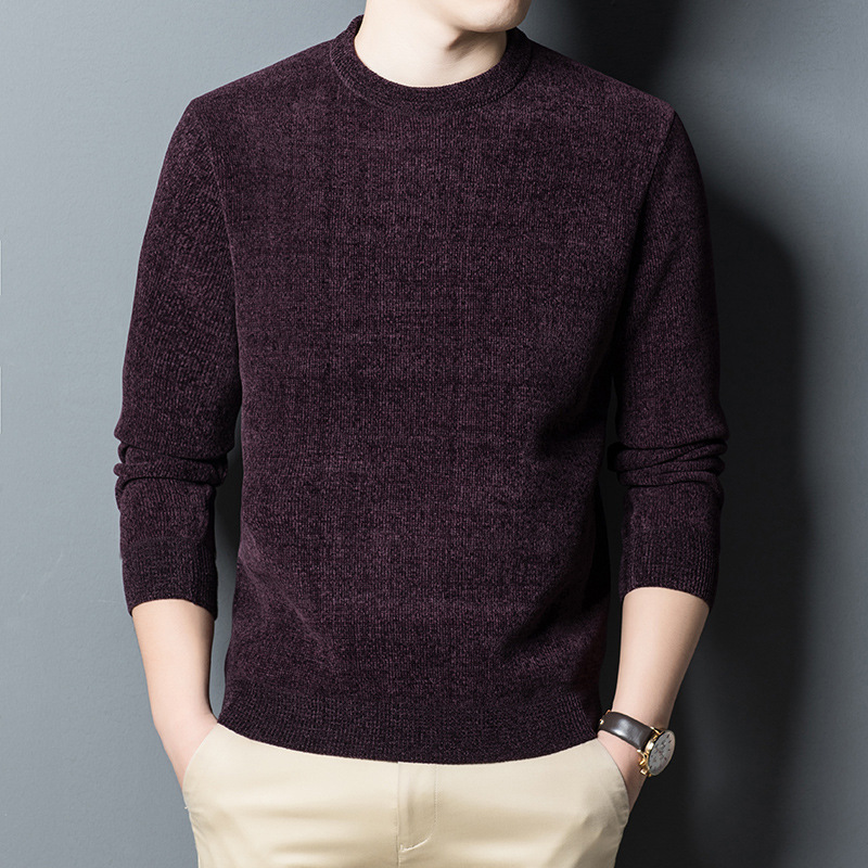 남자의 젊고 중년의 루즈한 베이스 니트웨어 가을과 겨울 라운드 넥 기모 두꺼운 셔닐 실 따뜻한 스웨터 남성복