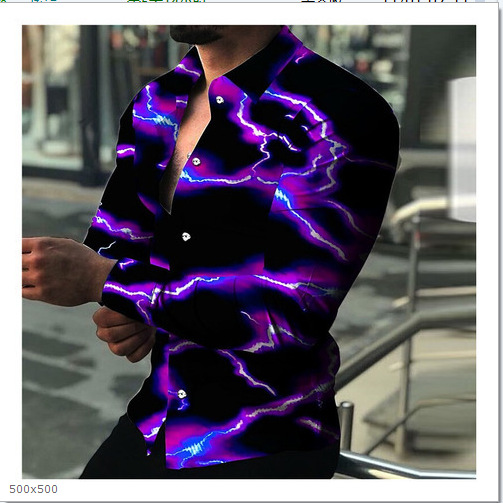 2023 EBAY 아마존 소원 독립 역 봄과 가을 새로운 남성 캐주얼 긴 소매 꽃 셔츠스토어 가기