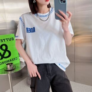 AderH 여름 반팔 한국 패션 브랜드 솔리드 컬러 루즈 캐주얼 티셔츠 남성과 여성 반팔 프린트 레터 코튼 바닥 셔츠스토어 가기