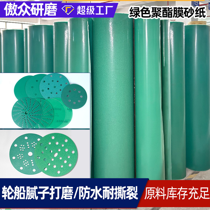 맞춤형 폴리에스터 필름 사포 녹색 회오리 구멍 다공성 진공 연마 광택 녹색 사포